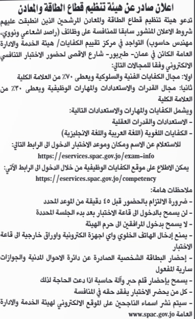 للعلّم - أعلنت مؤسسات حكومية ليوم الاحد، عن وظائف شاغرة، فيما أعلنت مؤسسات اخرى عن عقد الامتحان التنافسي لمن انطبقت عليهم شروط وظائف اعلن عنها سابقا.