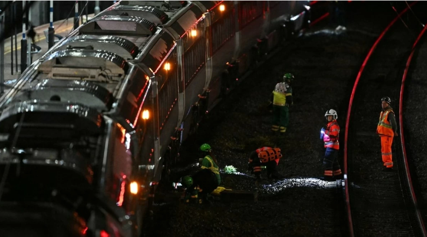 ونقلت هيئة البي بي سي البريطانية بيان الشرطة البريطانية اليوم الأحد، أن القطار تم تحويله إلى محطة هنتنغدون في مقاطعة كامبريدجشير، حيث لا يزال متوقفا، بينما تواصل فرق التحقيق عملها في الموقع.