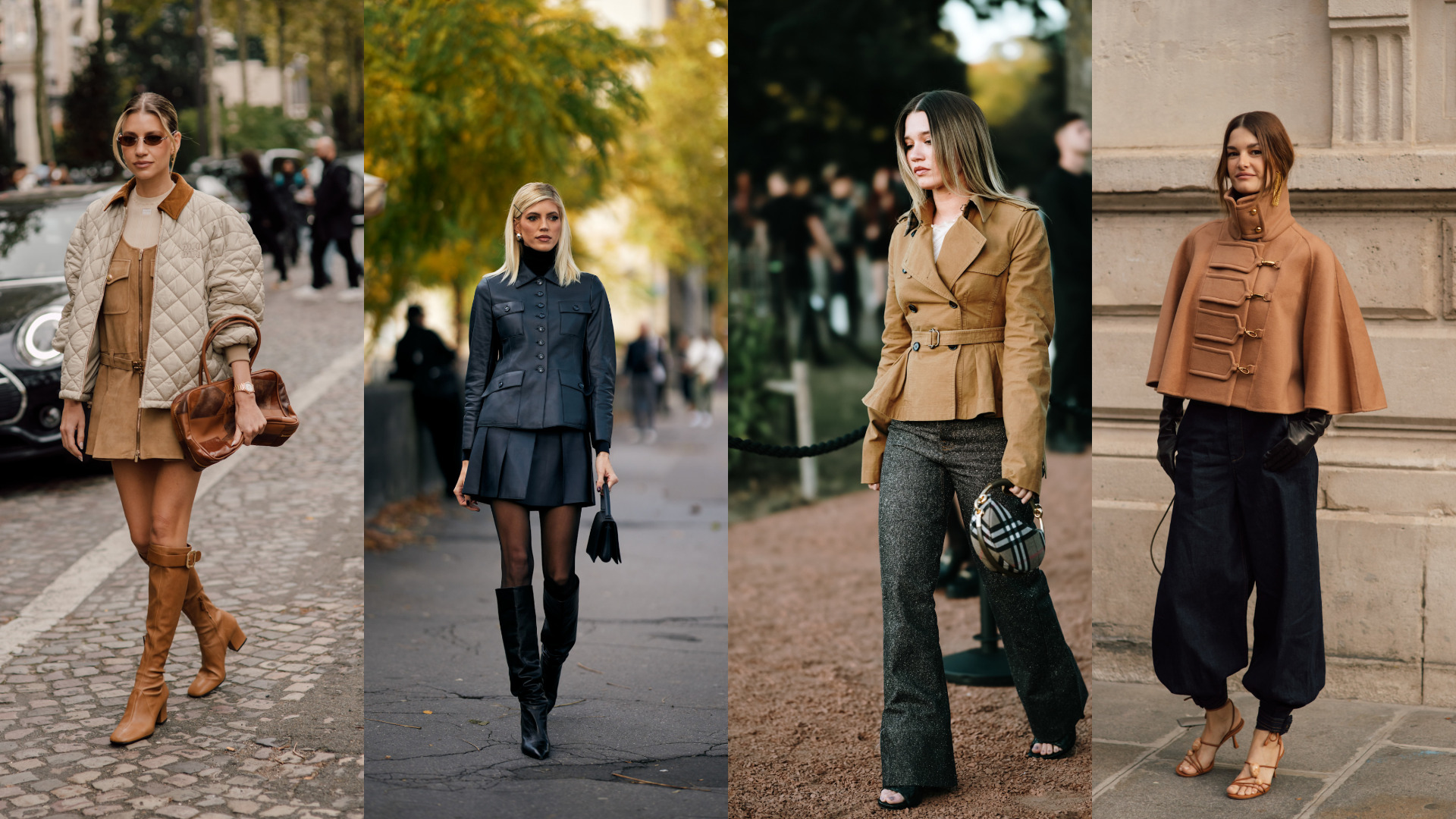 الجاكيتات المزودة بحزام عند الخصر، بألوان محايدة مثل البيج أو الرمادي الفاتح، لتحديد الانحناءات وإضافة طول بصري.