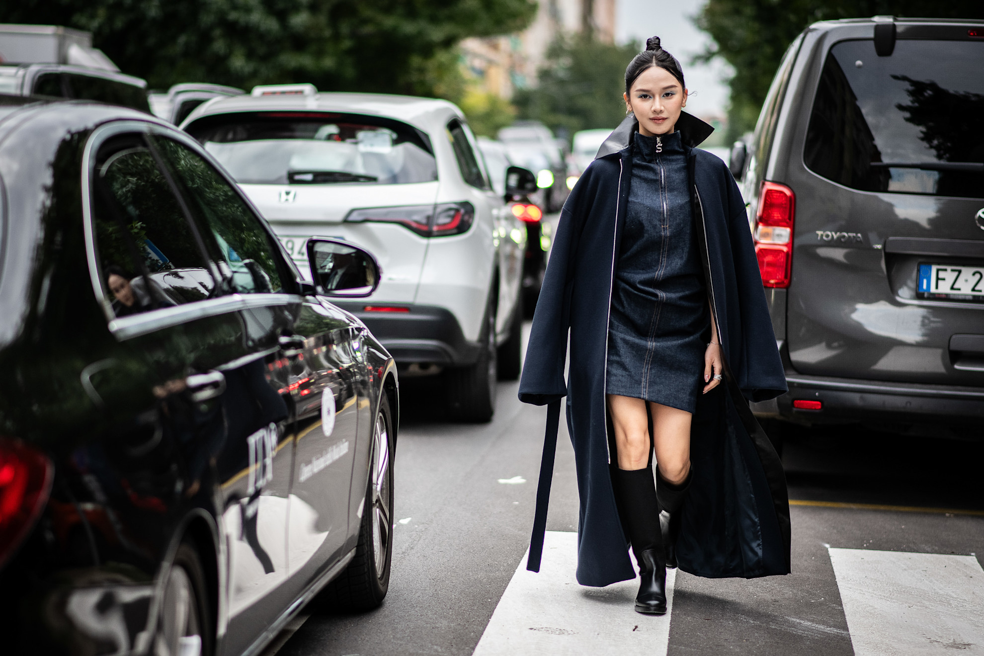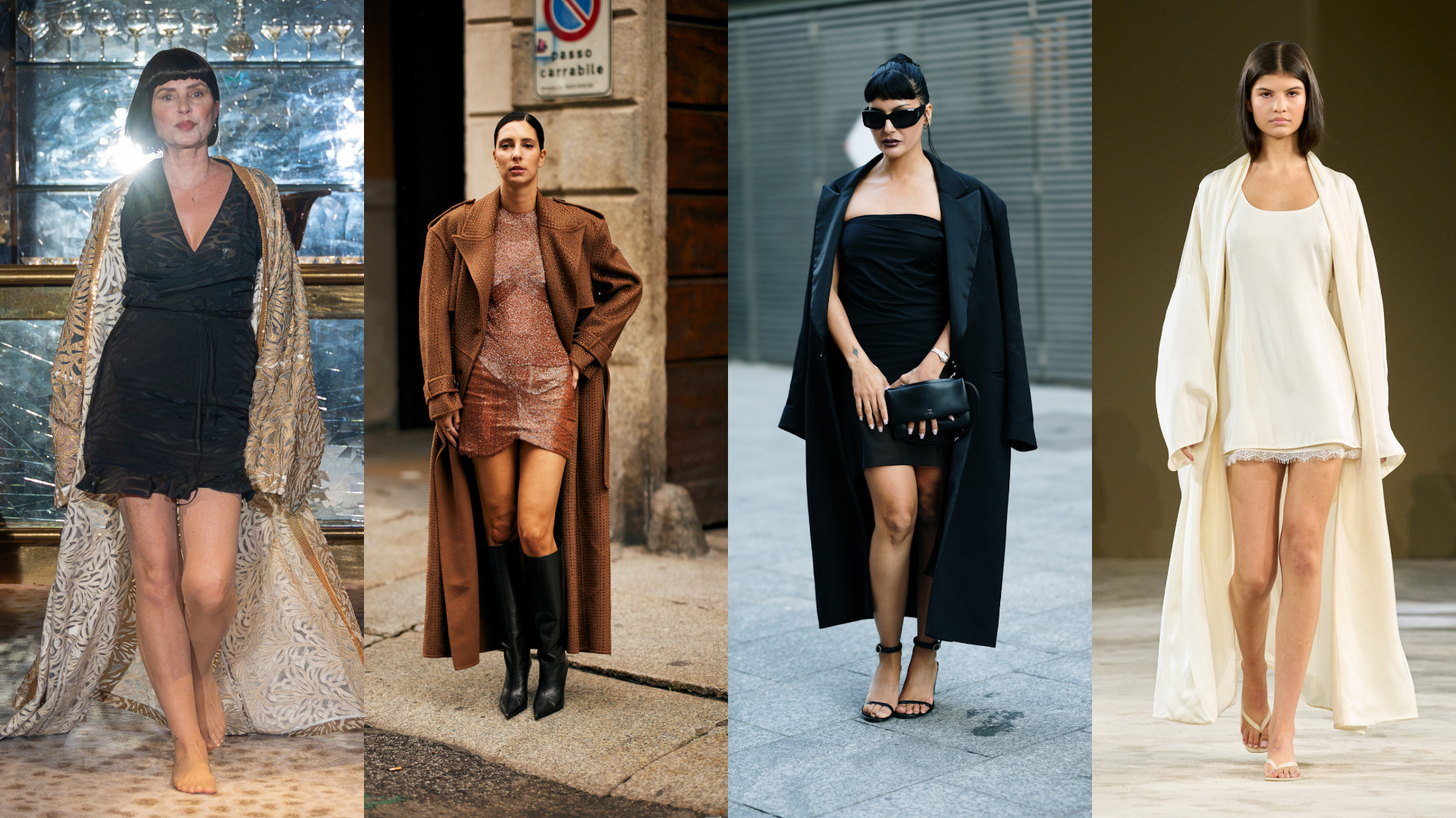 الجمع بين المعطف الطويل والفستان القصير يمنح إطلالة أنثوية وطويلة بشرط التنسيق الذكي: