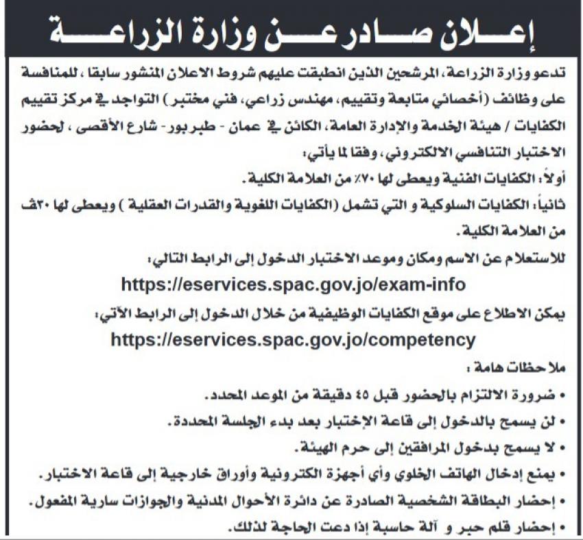للعلّم - أعلنت مؤسسات حكومية اليوم الأربعاء عن عقد الامتحان التنافسي لمن انطبقت عليهم شروط وظائف أعلن عنها سابقا.