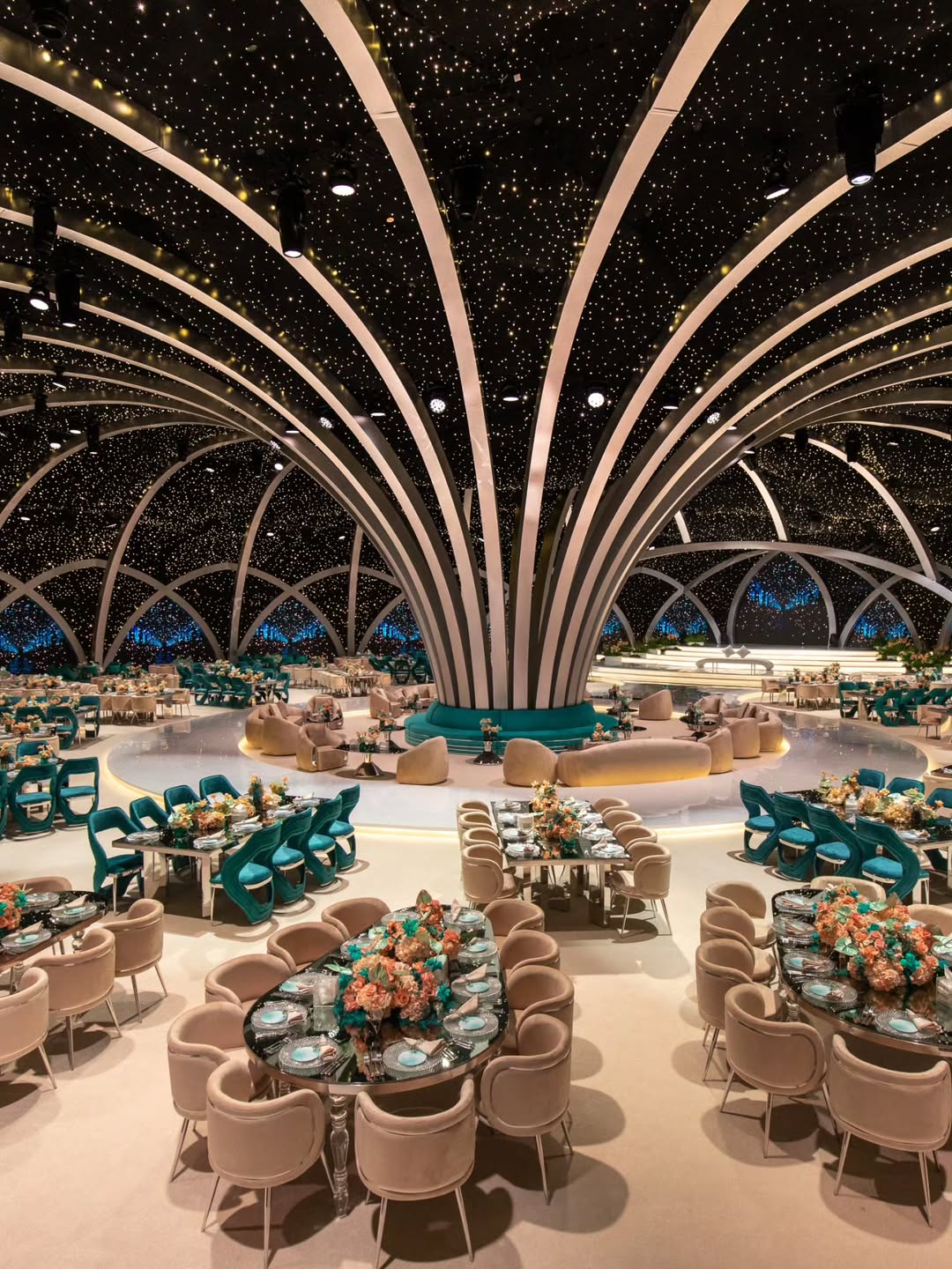 الإضاءة تلعب دورًا كبيرًا في تحويل القاعة إلى مشهد ساحر: