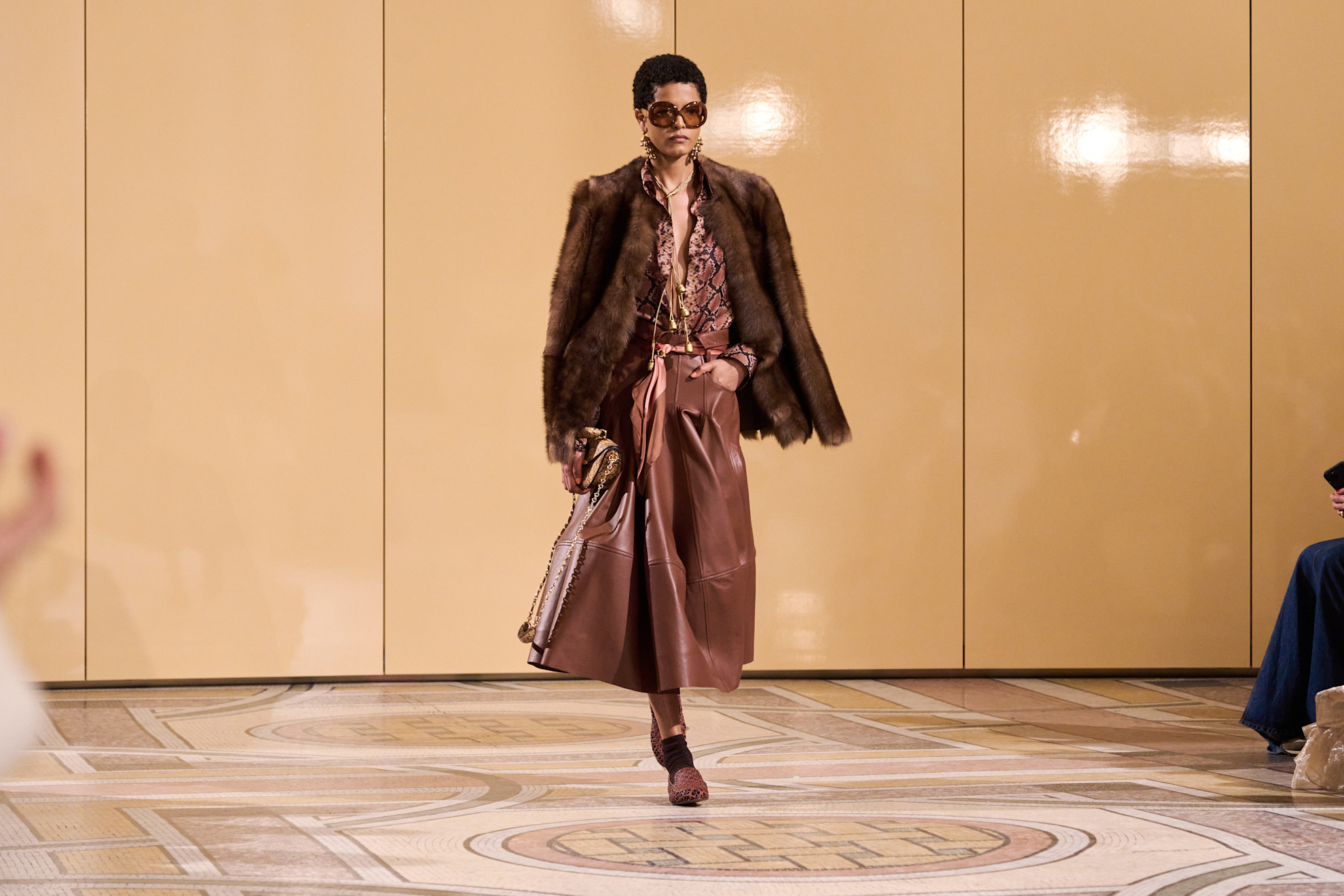 مثال: إطلالة Zimmermann بتدرجات وأقمشة متنوعة للبني، لمظهر حي وأنيق.