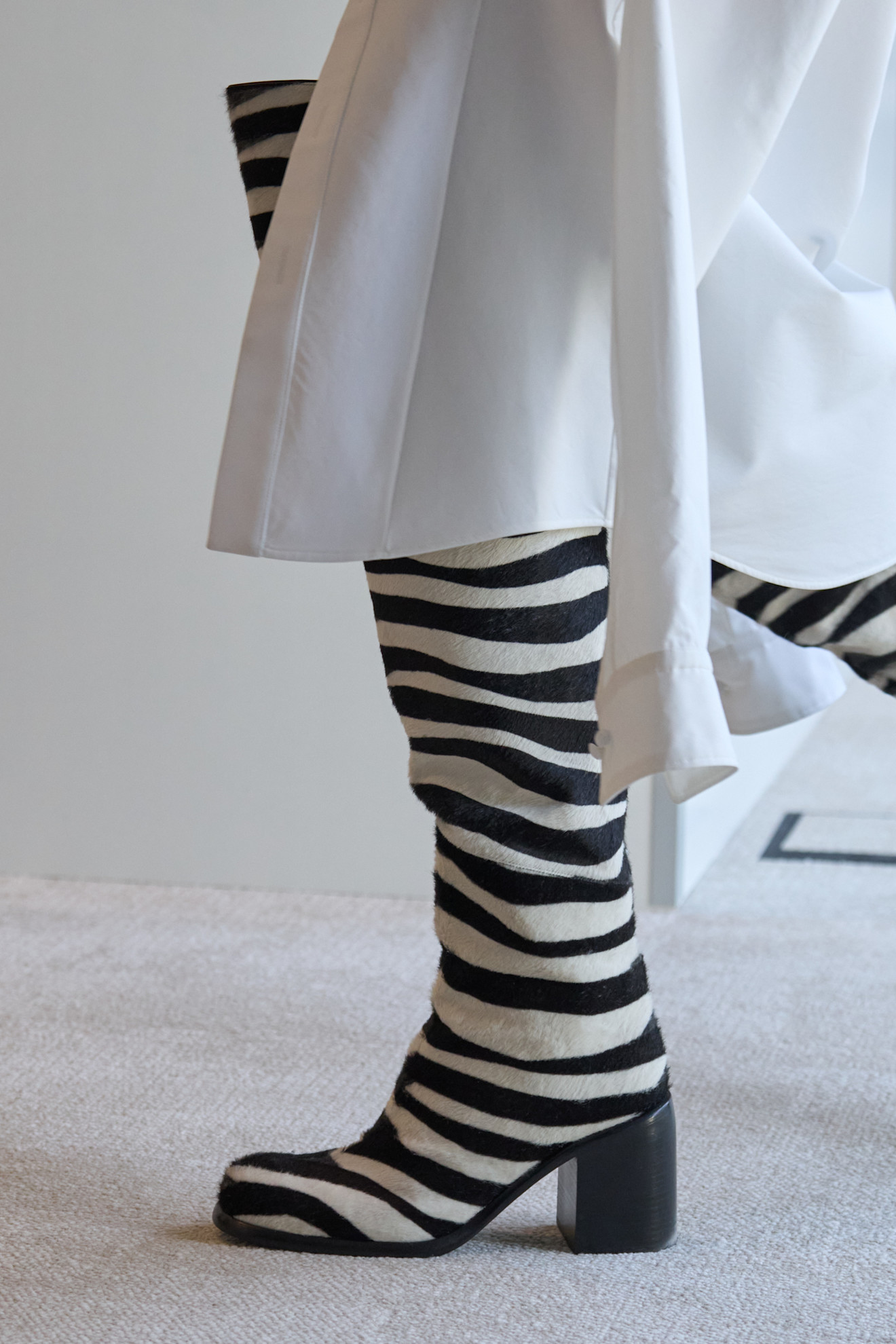 الأحذية البيضاء تظل خياراً عصرياً ومتعدد الاستخدامات، خاصة المدببة أو التي تشبه الجوارب.