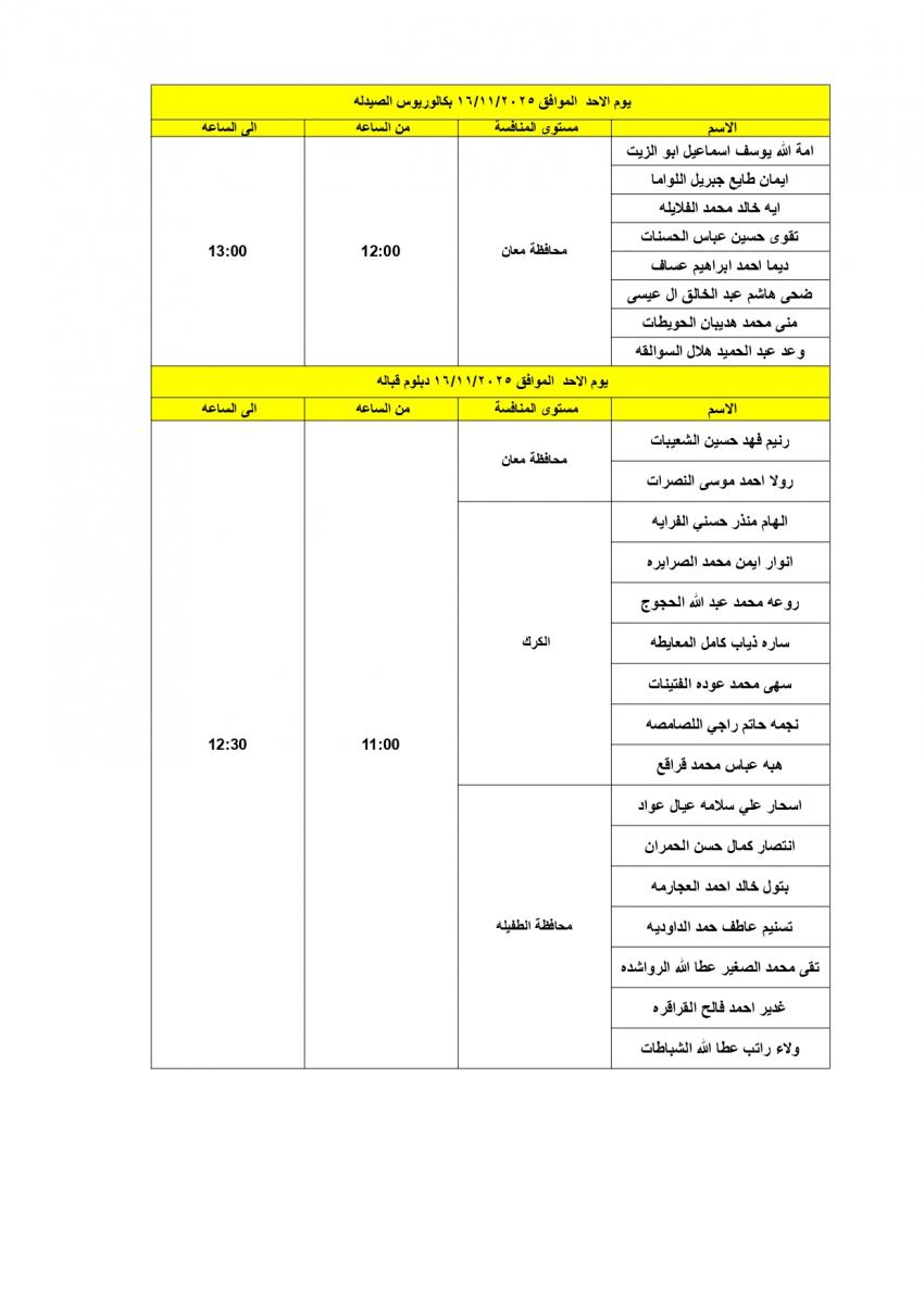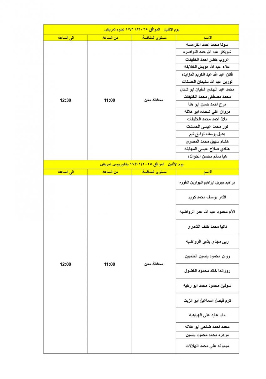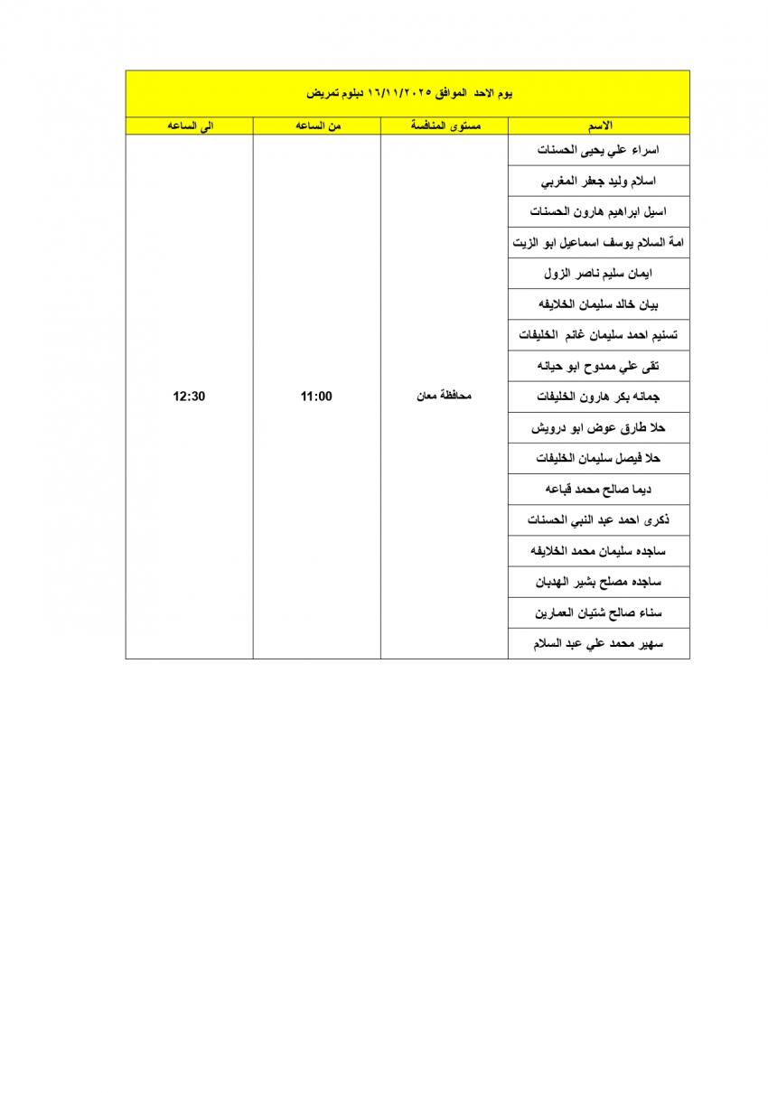 للعلّم - دعت وزارة الصحة المرشحين المبينة أسماؤهم ادناه والذين اجتازوا الامتحان التنافسي بنجاح التواجد في مديرية الموارد البشرية / الطابق التاسع في مبنى الوزارة الكائن في طبربور قرب مستشفى الامير حمزة في الموعد المحدد لاجراء المقابلة الشخصية لغاية التعيين .