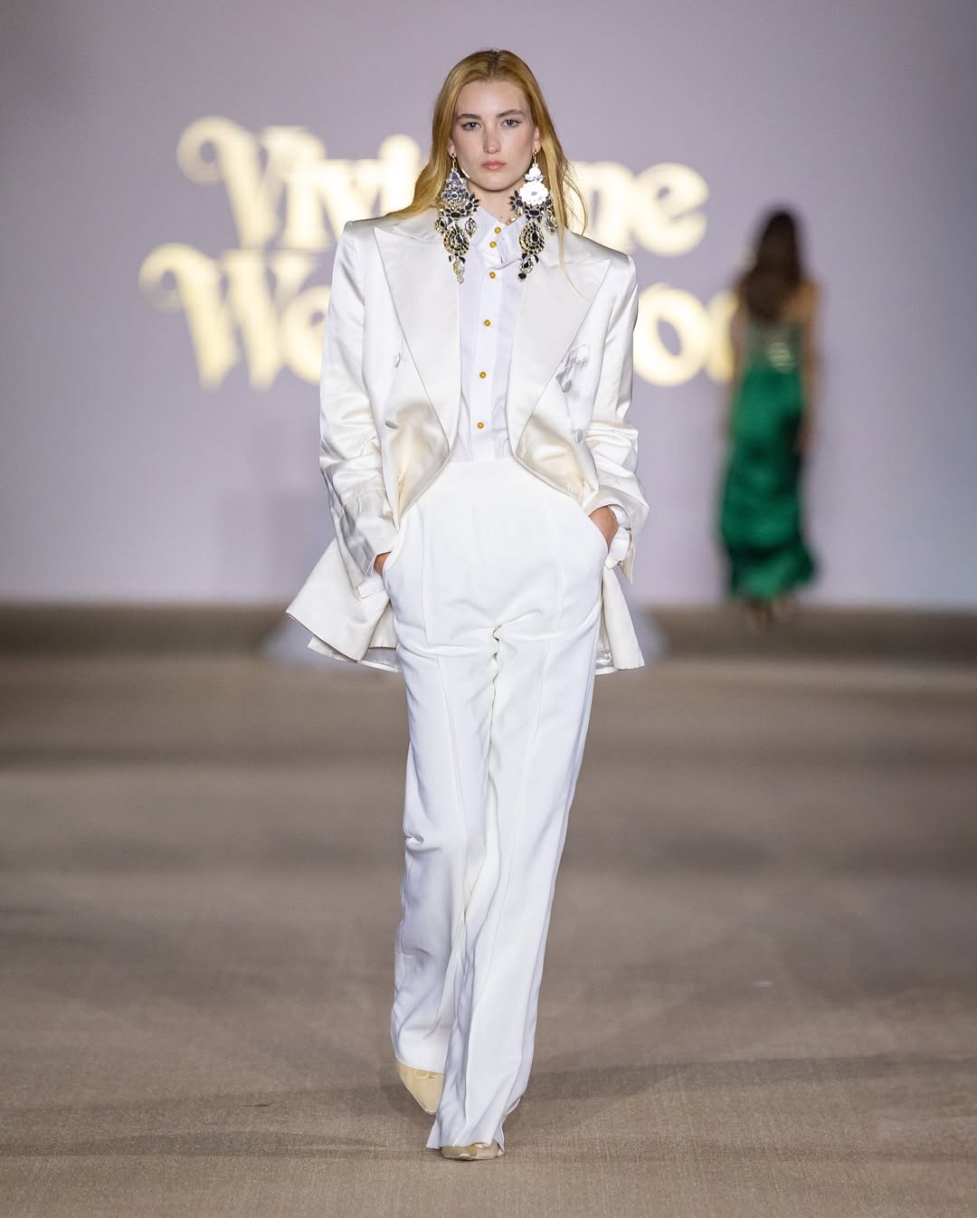 عرضت دار الأزياء العالمية فيفيان ويستوود لأول مرة في الشرق الأوسط ضمن النسخة الثالثة من أسبوع الموضة في الرياض، بالتعاون مع فنون التراث، حيث جسّد العرض تلاقي الحِرَف السعودية والإبداع البريطاني. وشمل مجموعة كبسولة من فساتين الكوتور الراقية المطروزة، إلى جانب إطلالات الدار لموسم ربيع وصيف 2026 وبعض الأعمال الأرشيفية، وسط ديكور مستوحى من أشجار النخيل، رمز الحياة والصمود في الثقافة السعودية، ما أضفى بعدًا ثقافيًا وفنيًا مميزًا على العرض.