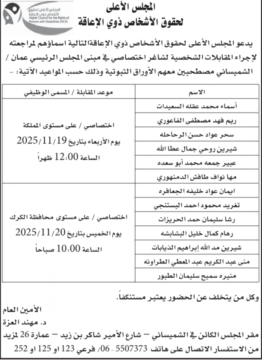 للعلّم - دعت وزارات ومؤسسات حكومية، اليوم الثلاثاء، التالية أسماؤهم لإجراء المقابلات الشخصية.