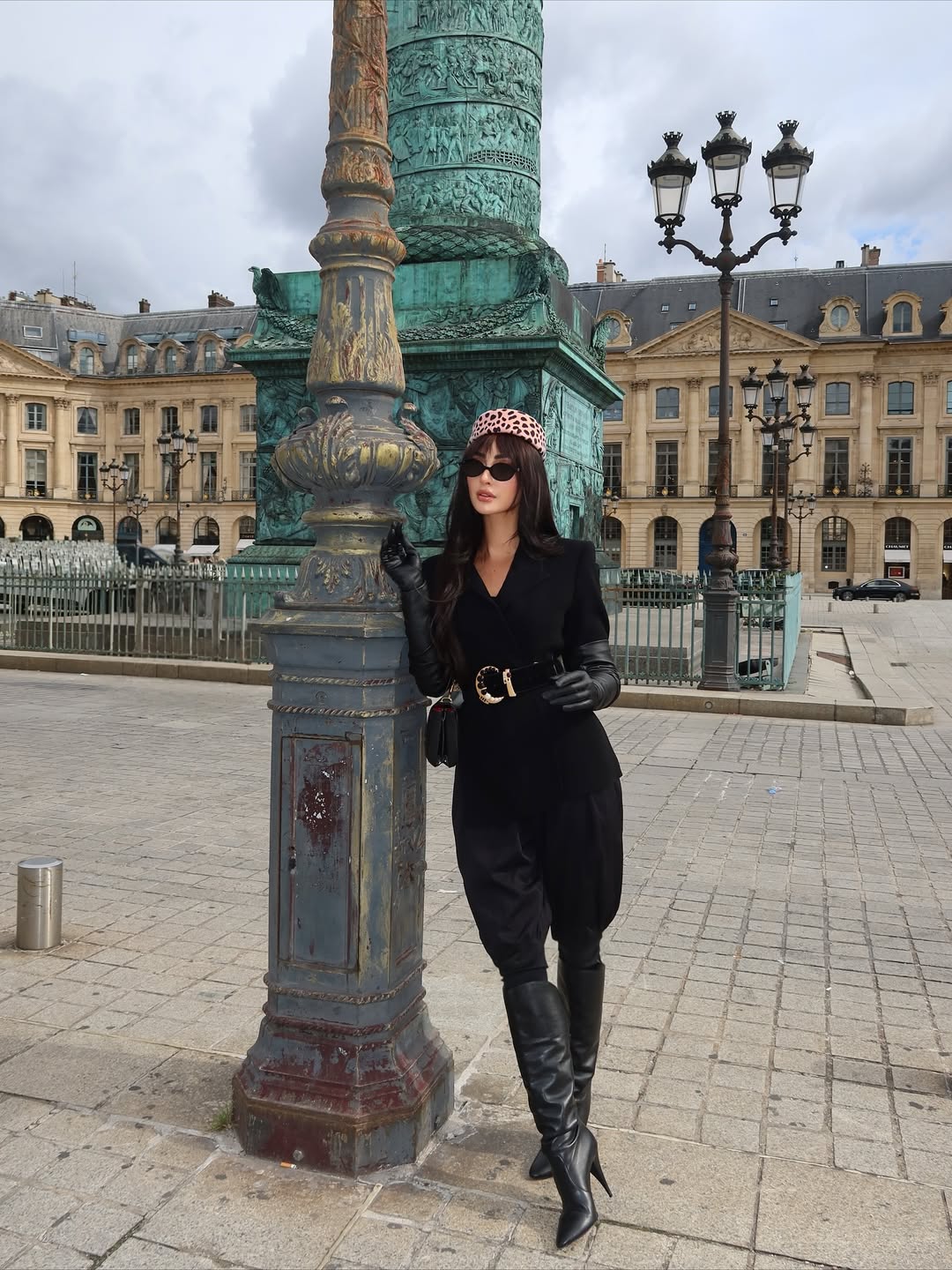 وفي ستريت ستايل خريفي طغى عليه الأسود بالكامل، من البليزر والبنطال إلى القفازات الجلدية والبوت العالي، كسرت نور تلك الجرعة الدرامية بقبعة بيج منقطة في إطلالة لا تحتاج إعلانًا لتُفهم – حضورها كان كافيًا.
