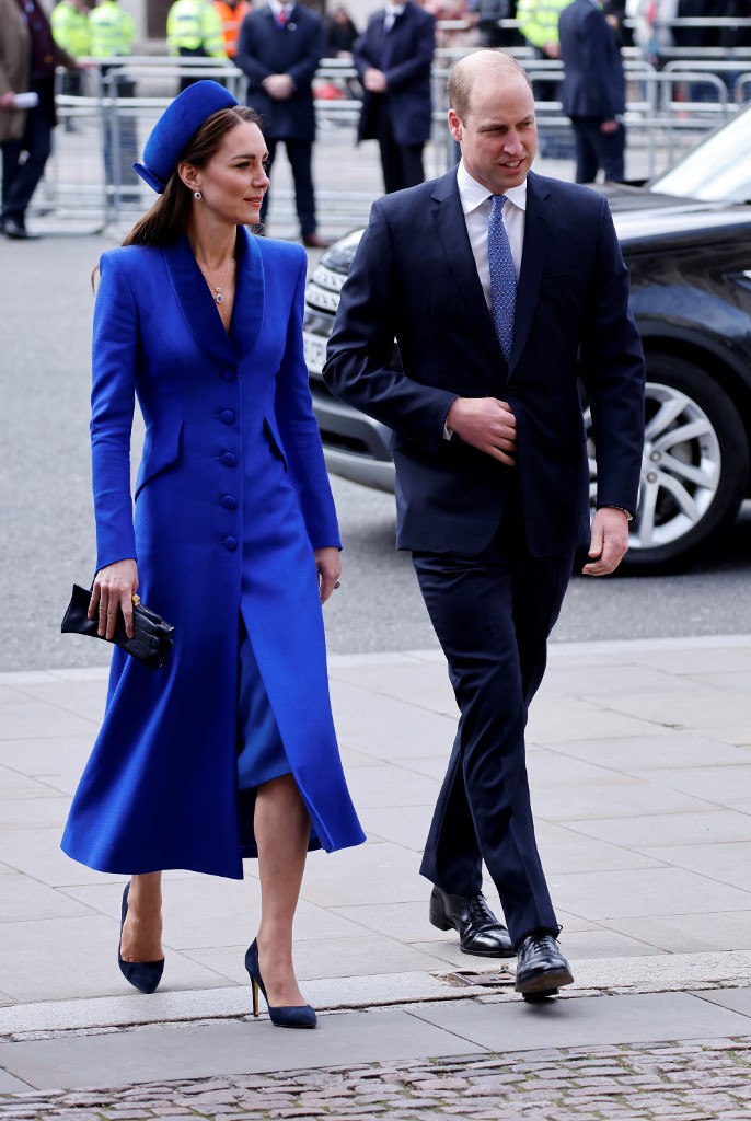 في إطلالات أكثر عملية، تألقت كيت بمعطف أزرق من Catherine Walker بياقة V مخملية، ونسقته مع فستان وحقيبة وحذاء بتدرجات الأزرق نفسه، بينما زيّنت الإطلالة بمجوهرات مرصعة بالألماس والياقوت من مقتنيات الأميرة ديانا… لمسة وفاء ملكية بطابع عصري.