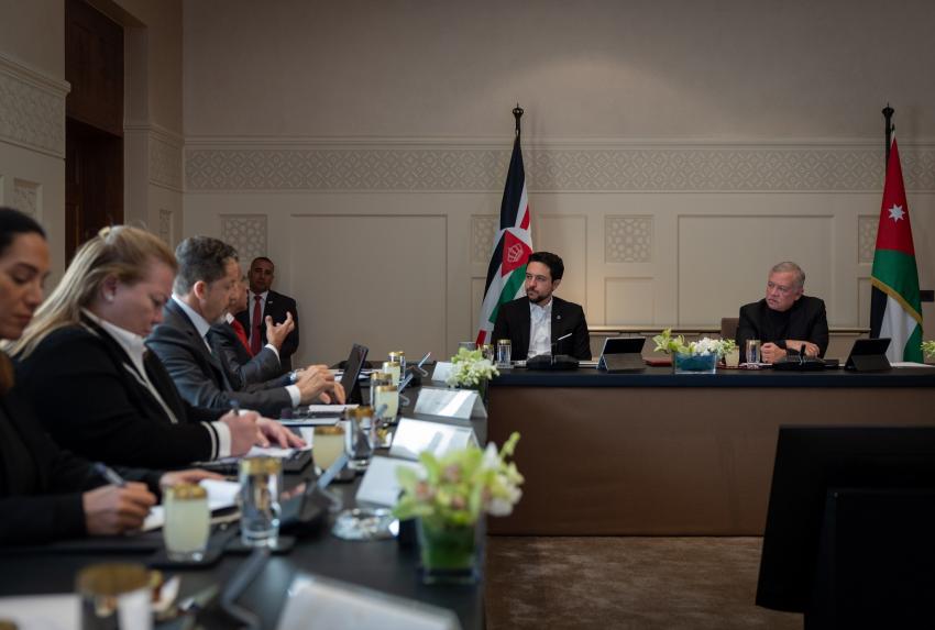 وحضر الاجتماع مدير مكتب جلالة الملك، المهندس علاء البطاينة، ووزير دولة للشؤون الاقتصادية مهند شحادة، ووزيرة التخطيط والتعاون الدولي زينة طوقان.
