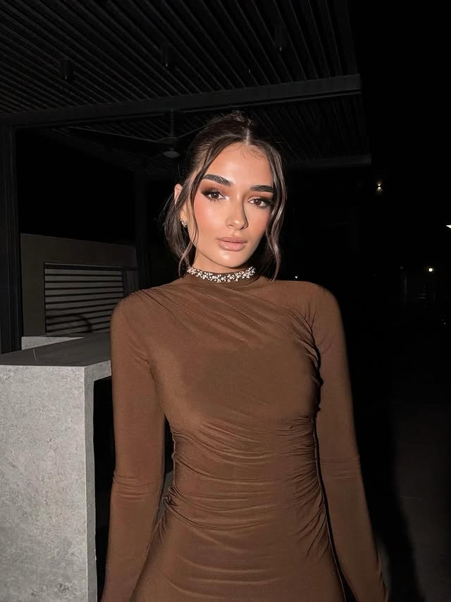 تألقت ملك أحمد زاهر بفستان بني داكن من Taya Couture بقصة ضيقة وانسيابية، تبرز القوام دون مبالغة، مثالي للنجمة الشابة التي تبني حضورها بثبات. أكملت الإطلالة بمكياج ناعم يبرز ملامح الوجه، وتسريحة شعر مرفوعة وأنيقة، ما جعل الطلة متوازنة وجذابة في نفس الوقت، مع التركيز على الحداثة والرصانة.