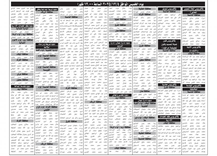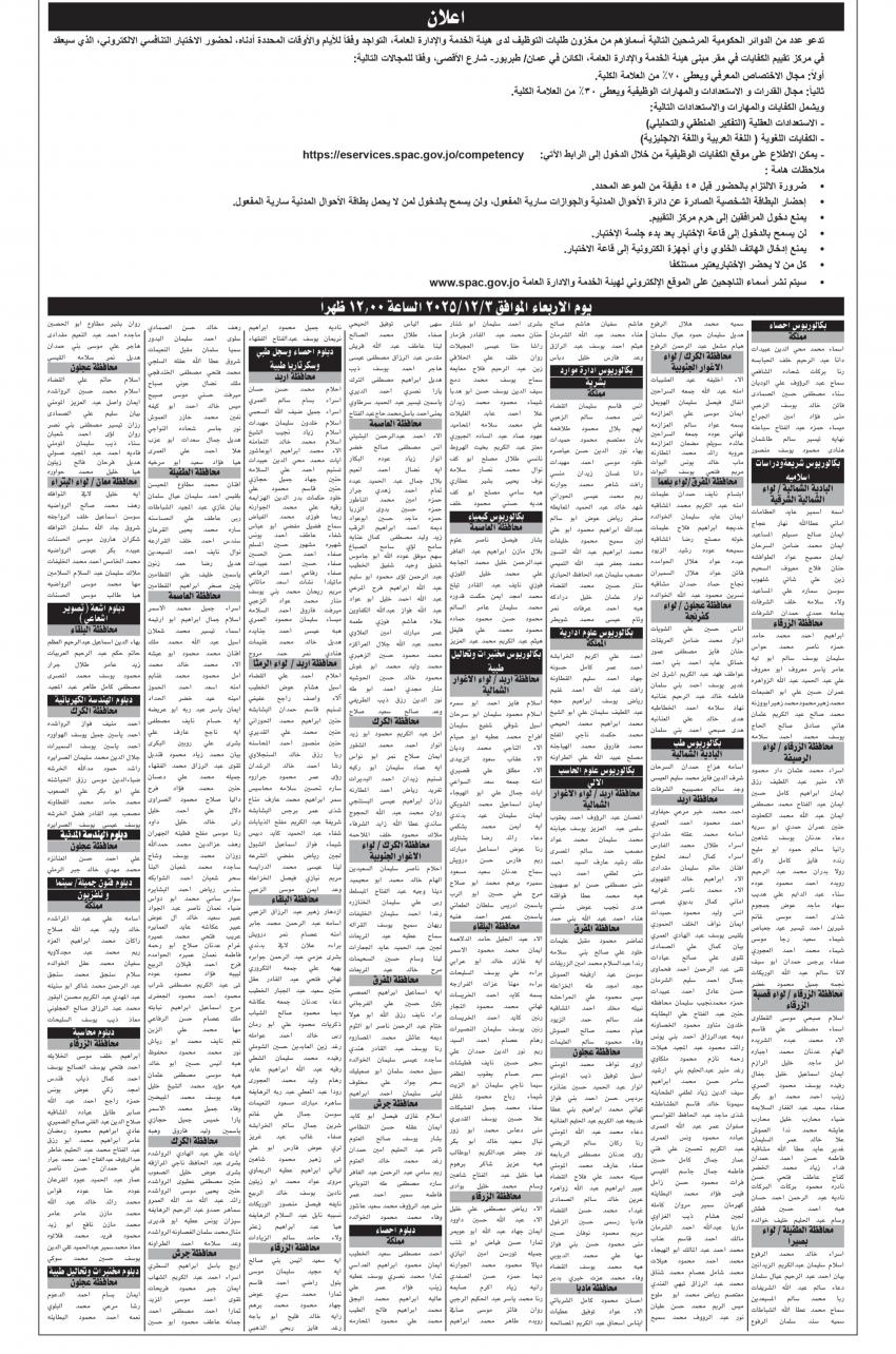للعلّم - دعت وزارات ومؤسسات حكومية، اليوم الخميس، التالية أسماؤهم لحضور الامتحان التنافسي.