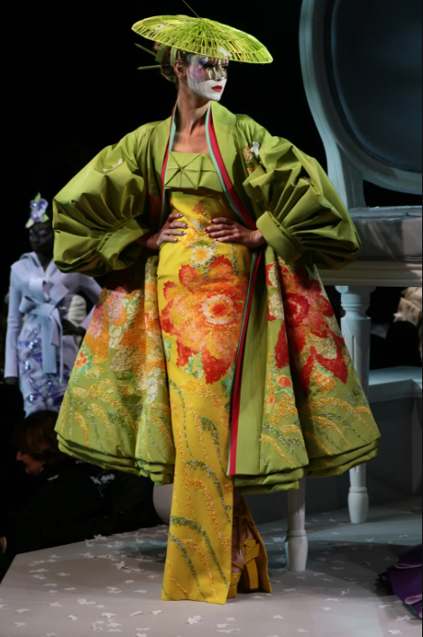 جون غاليانو في فترة عمله مع ديور استلهم التفاصيل من الكيمونو والنقشات الشرقية.
