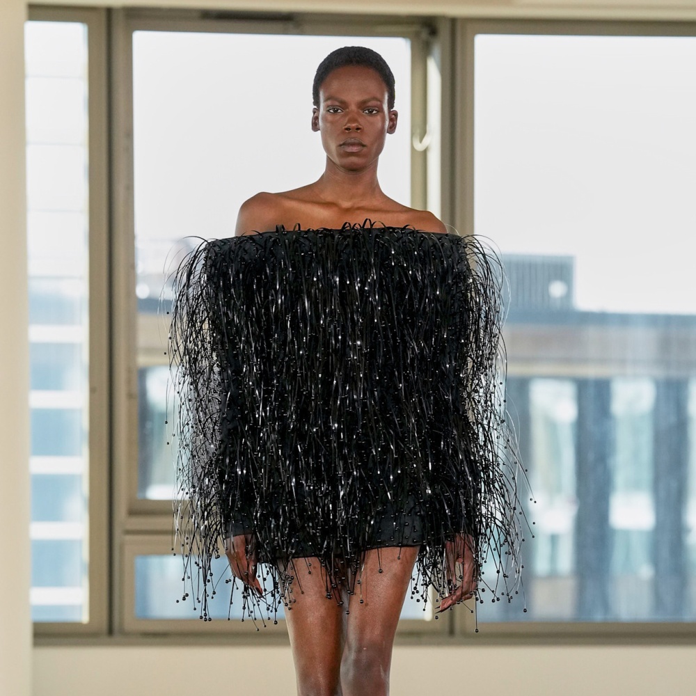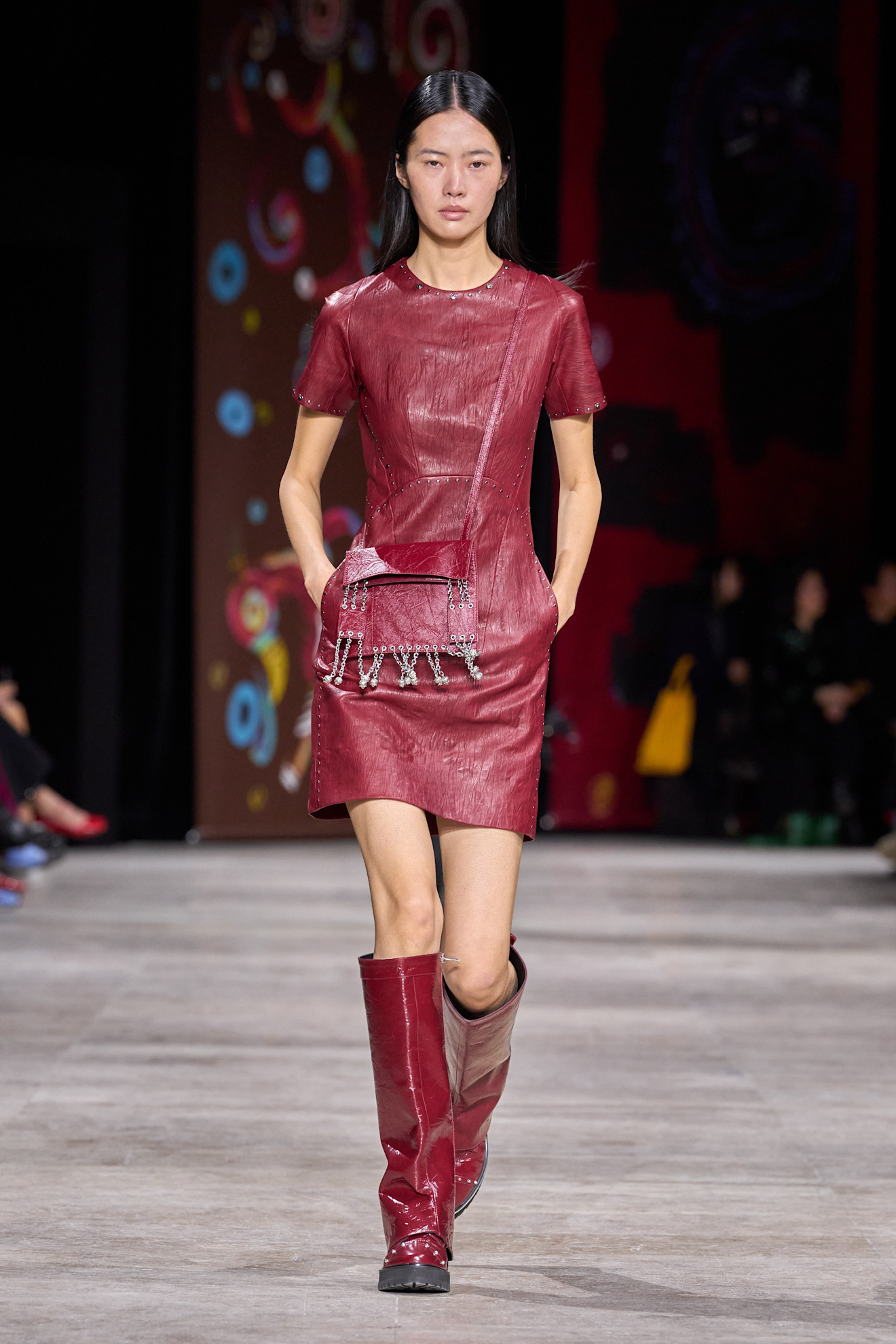 بعيدًا عن الملابس، تسيطر الشراريب أيضًا على الأكسسوارات هذا الموسم، لتضيف لمسة جريئة وعصرية. إطلالة Shiatzy Chen قدمت حقيبة باللون الأحمر مع شراريب معدنية فضية، ما جعلها محور الإطلالة ومميزة بأسلوب أنيق ومبتكر.