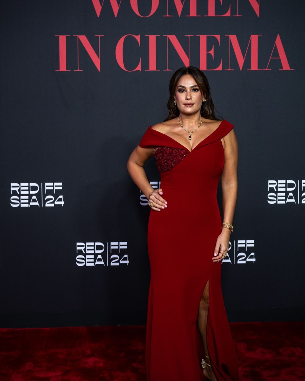 ريا أبي راشد: الإعلامية الشهيرة اعتمدت اللون الأحمر في أكثر من مناسبة، أبرزها فستان طويل من جورج شقرا مزود بأكتاف عريضة ووشاح خلفي متدلي، مع عقدة عند الخصر وثنيات تضفي حركية على التصميم، كما ظهرت بفستان ملكي آخر من زهير مراد مزين بتطريزات لامعة ووشاح خلفي فاخر، ليجسد الفخامة والجرأة في الوقت ذاته.