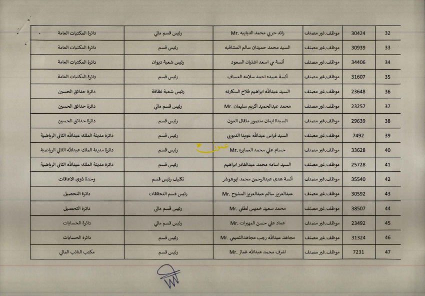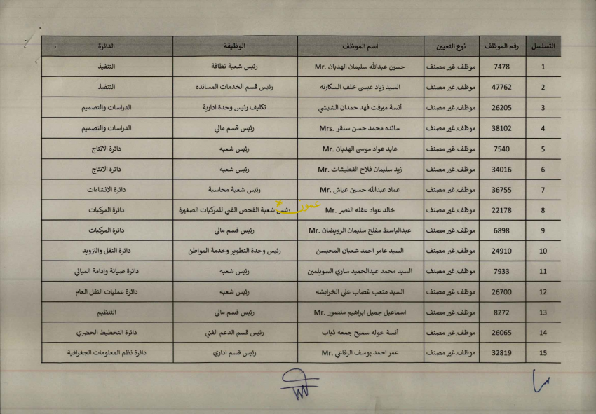 وشملت الإحالات وظائف بمهنة ورئيس قسم وشعبة وغيرها.