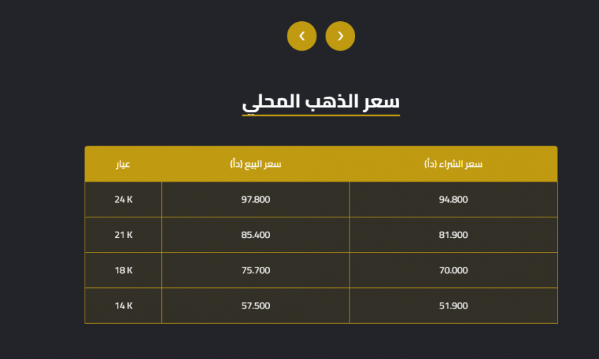 كما بلغ سعر الغرام الواحد من الذهب عيارات 24 و18 و14 لغايات البيع من محالّ الصاغة 97.8 و75.7 و57.5 دينارا على الترتيب.