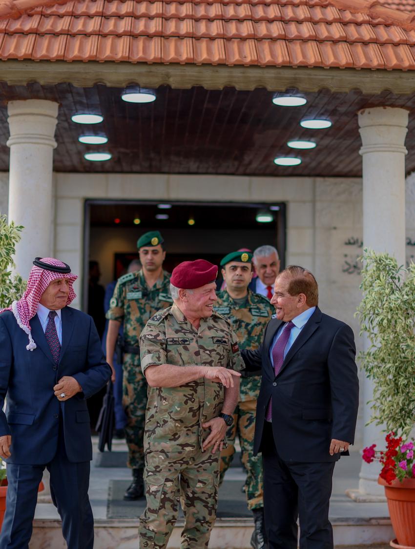 وجرى اللقاء بحضور رئيس الديوان الملكي الهاشمي يوسف حسن العيسوي، ورئيس هيئة الأركان المشتركة اللواء الركن يوسف أحمد الحنيطي.