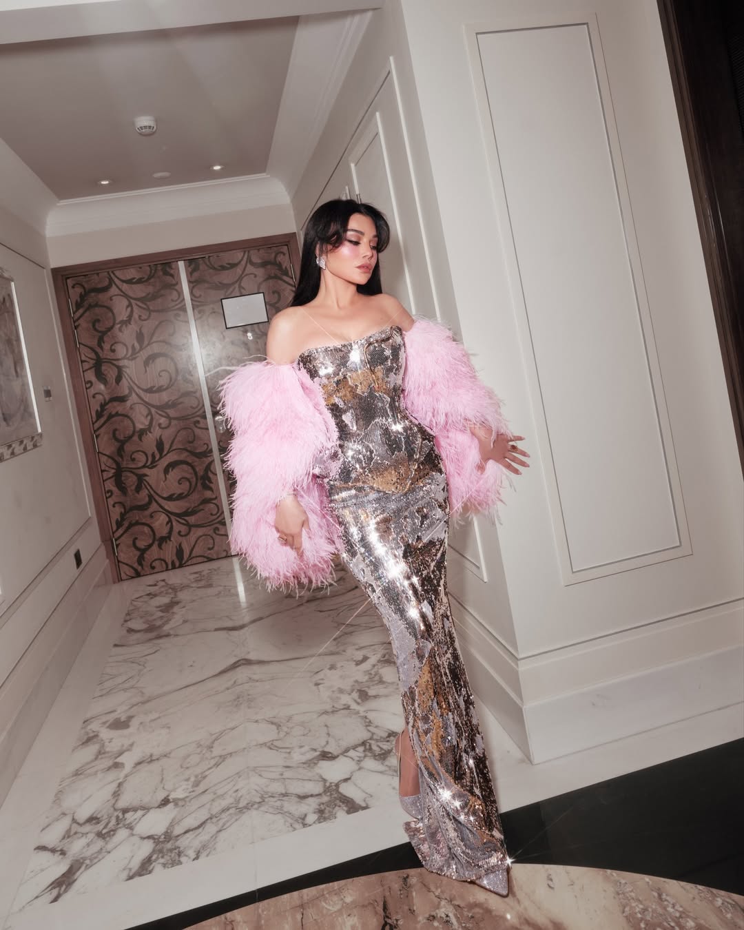 الفساتين المعدنية… لمعان مدروس لا يشيخ