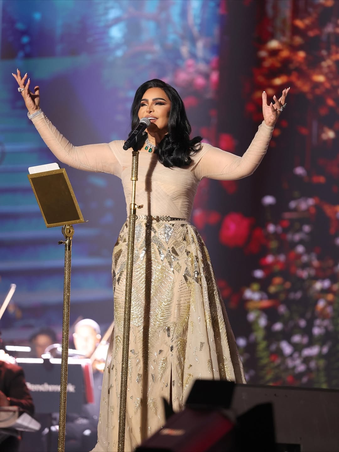 هيفاء وهبي اختارت الكورسيه المعدني الفضي بتوقيع رامي سلمون، فيما قدّمت إليسا الفستان الفضي العمودي بأسلوب راقٍ من Ermanno Scervino، وأضافت القفازات لمسة كلاسيكية أعادت البريق إلى زمن الأناقة الهادئة. أما نانسي عجرم فاختارت فستان إيلي صعب بقصة هالتر وتطريزات هندسية عكست الضوء بذكاء.