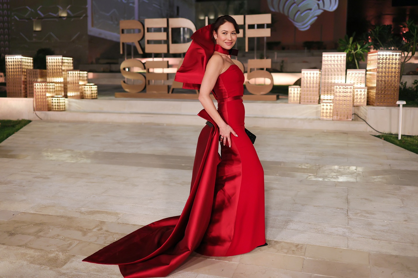 النجمة العالمية أولجا كوريلنكو اختارت الأحمر الجريء في فستان سترابلس مجسم، تميز بفيونكة خلفية كبيرة ووشاح أنيق، ليقدم دراما بصرية متقنة بلا مبالغة.