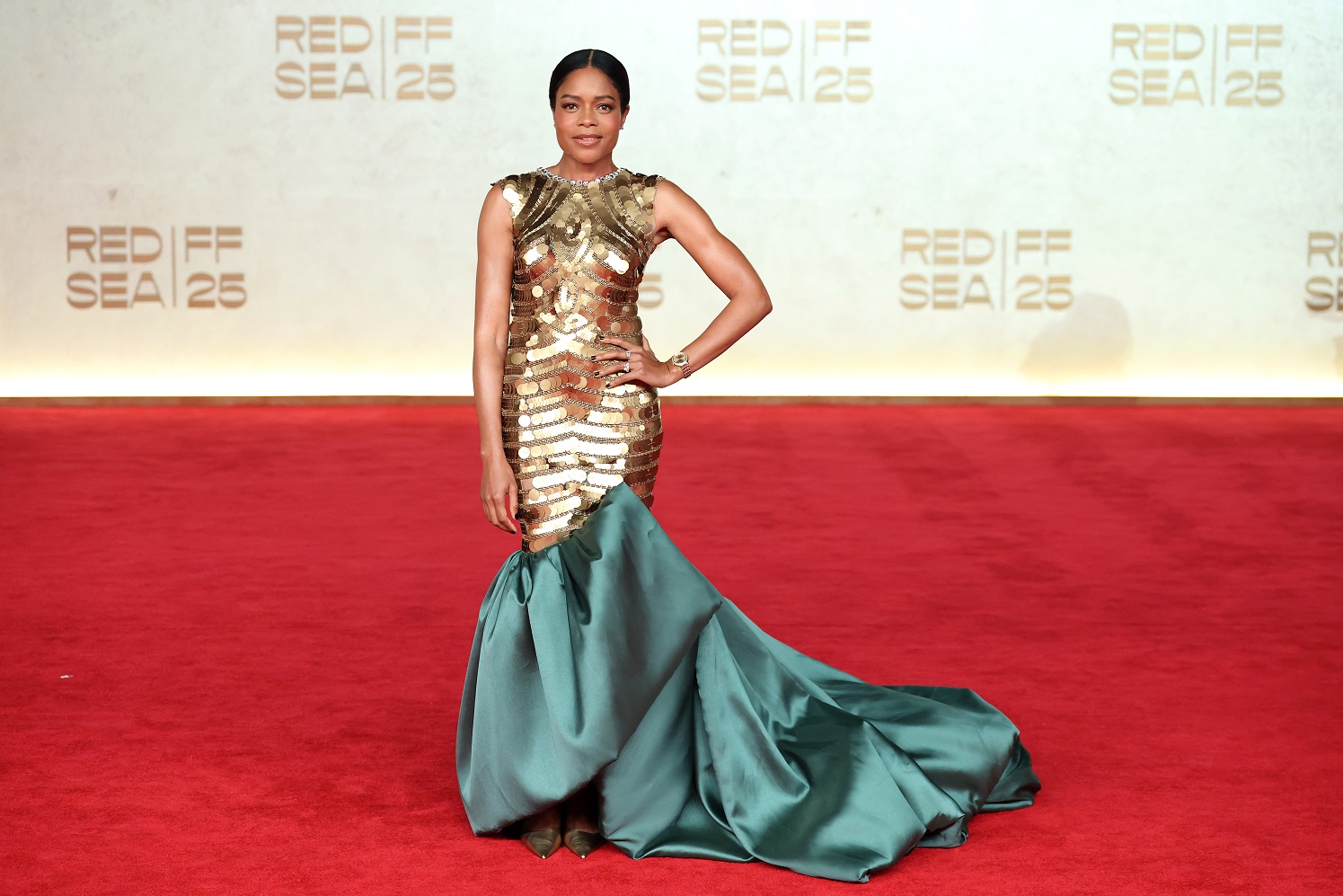 أما ناعومي هاريس، فجدّدت ثقتها بتصاميم تيما عابد عبر فستان حورية مطرز بالذهب في جزئه العلوي، مع ذيل حريري أخضر زمردي، في توازن ذكي بين الفخامة والهدوء.