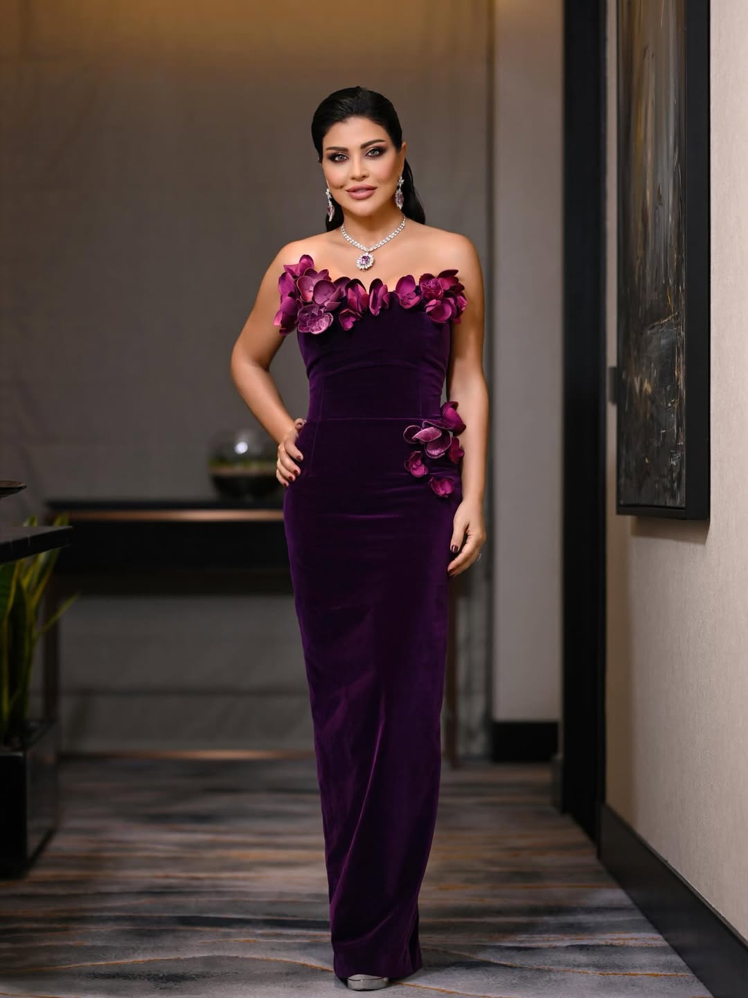 الفساتين المخملية مكشوفة الكتفين تعود بقوة هذا الموسم، لتمنح الإطلالة لمسة أنثوية راقية. هذا التصميم يبرز جمال القوام ويعكس ثقة عالية بالنفس، خاصة عند تنفيذه بقصة مجسمة وألوان داكنة غنية مثل البنفسجي أو العنابي. تفاصيل الورود أو الكشكش عند الياقة أو الخصر تضيف بُعدًا فنيًا ناعمًا، يجعل الفستان قطعة لافتة دون الحاجة إلى إكسسوارات مبالغ بها.