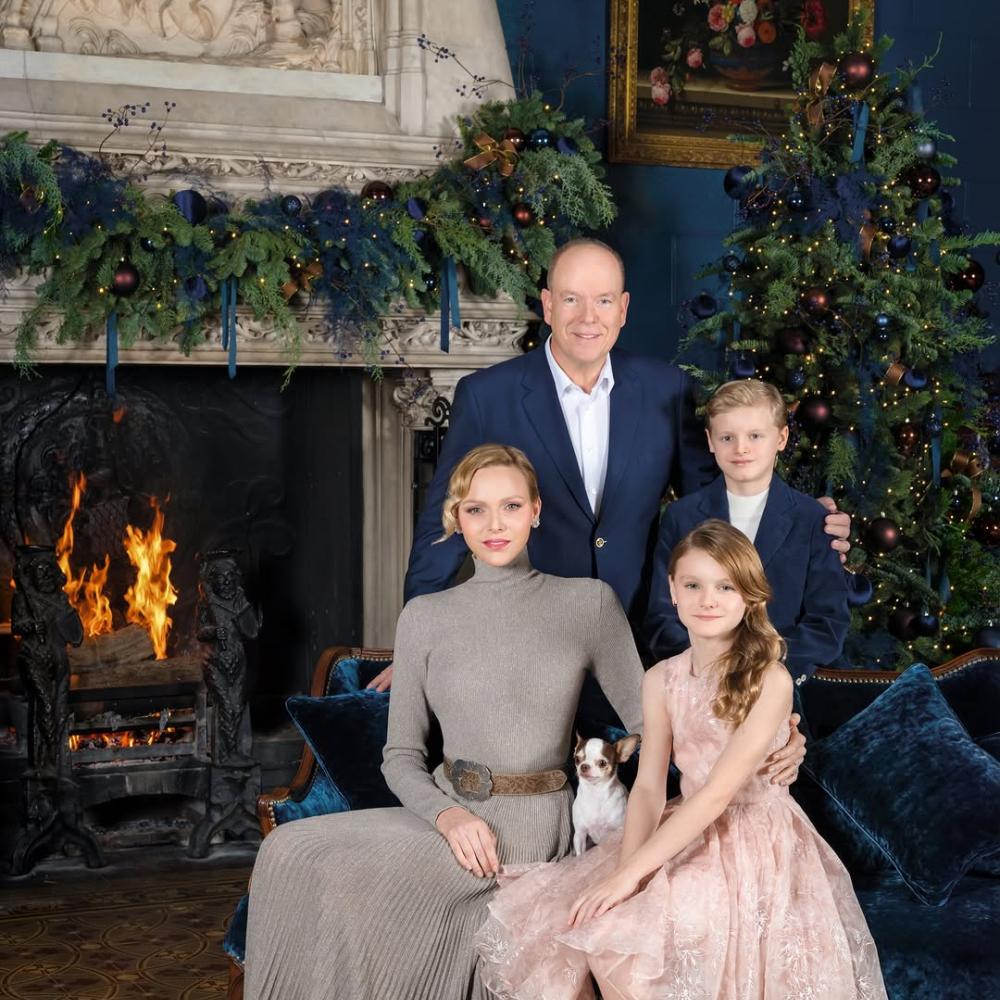 الأميرة شارلين ظهرت في بطاقة عيد الميلاد الملكية لعام 2025 بإطلالة هادئة في موناكو، جمعت بين تنورة بيج فاتح وكنزة ضيقة برقبة عالية.