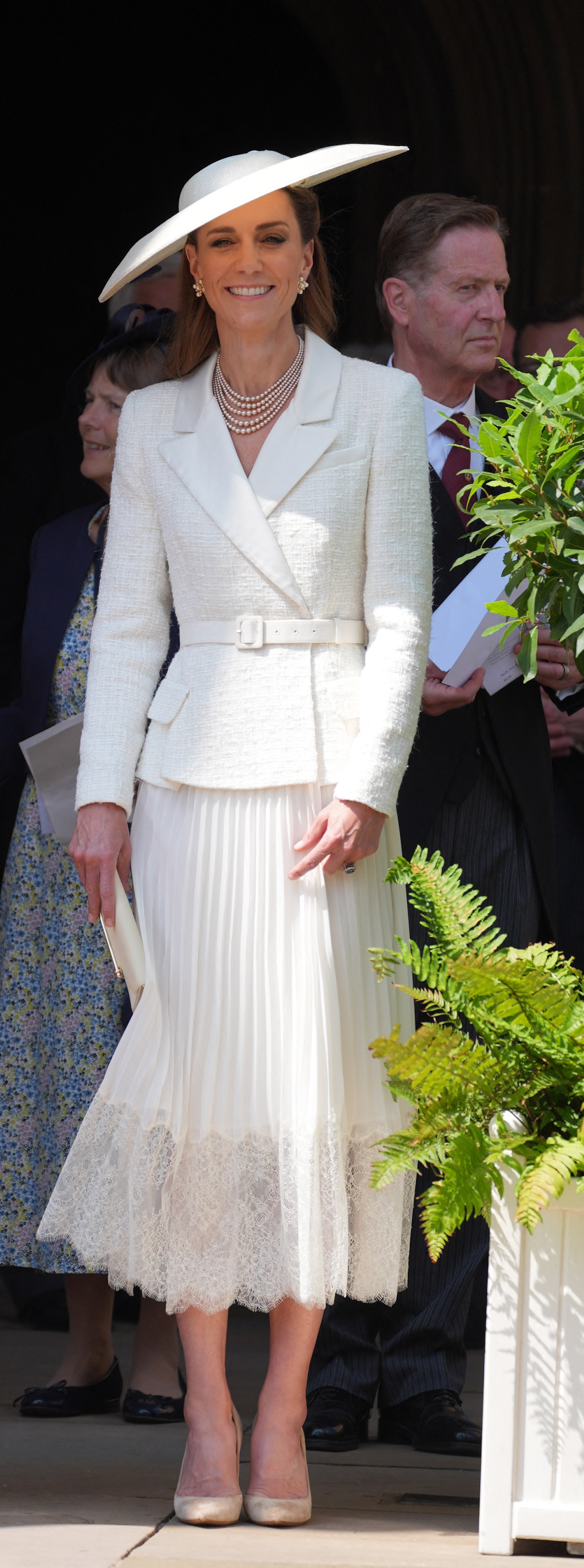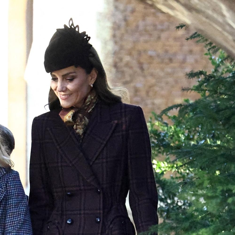 في أحدث ظهور لها، تألقت كيت بفستان–معطف طويل بنقشة المربعات من تصميم Blazé Milano، نسّقته مع قبعة بنية صغيرة ووشاح حريري سبق أن اعتمدته قبل سنوات، في لمسة ذكية تعكس فلسفتها في إعادة توظيف القطع الكلاسيكية. أكملت الإطلالة بحذاء وحقيبة بدرجات البني، فيما حملت أقراط Cartier Trinity بعدًا عاطفيًا خاصًا، تكريمًا لذكرى الأميرة ديانا.