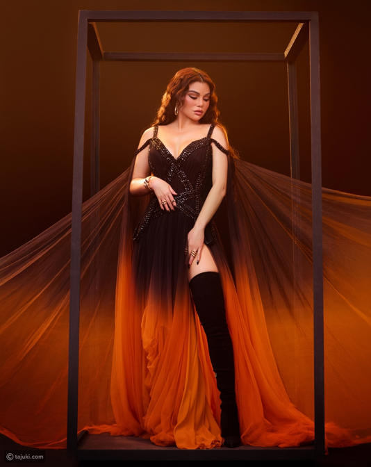 مكياج برتقالي جريء يترجم قوّة هيفاء وهبي