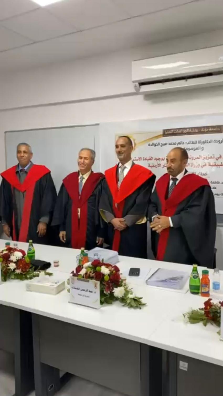 للعلّم - يتقدم عمران المناصير بأسمى آيات التهنئة والتبريكات من عطوفة العميد الركن الطيار حاتم محمد الخوالدة ابو محمد بمناسبة حصوله على درجة الدكتوراة في فلسفة الإدارة الاستراتيجية .