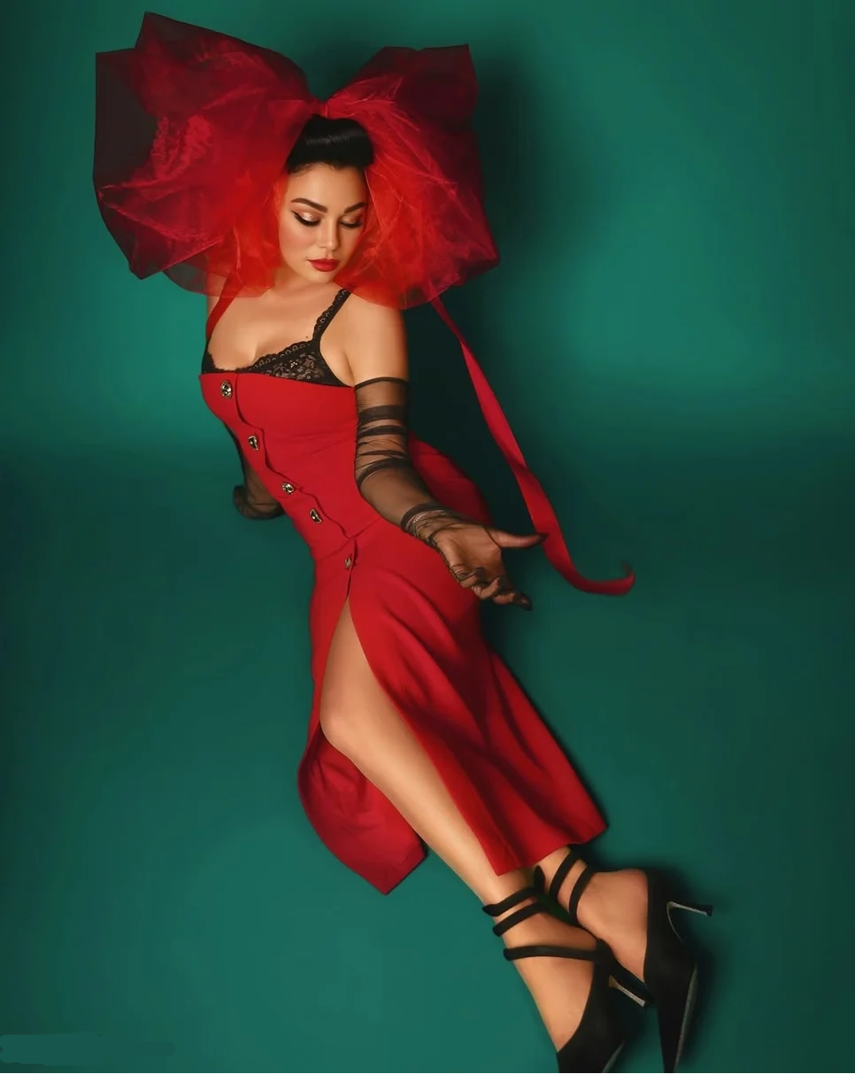 كعادتها، اختارت هيفاء وهبي إطلالة جريئة تعكس أجواء الأعياد، بفستان أحمر مشرق طويل وضيّق يبرز قوامها، مع فتحة جانبية مرتفعة تضيف لمسة أنثوية لافتة. تميز التصميم بأزرار أمامية كلاسيكية وأكمام قصيرة شفافة من القماش الشبكي، إلى جانب حمالة كتف سوداء من الدانتيل منحت الإطلالة توازنًا بين الجرأة والرقي. وأكملت اللوك بإكسسوار رأس من التول الأحمر وحذاء أسود أنيق عزز من فخامته.
