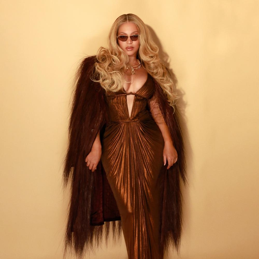 وفي سياق الاحتفال بثروتها الجديدة، ظهرت بيونسيه بإطلالات ميتاليك تعكس الثراء حرفيًا. فستان برونزي طويل بخطوط عمودية وانسدال ناعم، رافقته عباءة فرو كثيفة ونظارات دائرية، منحها حضورًا يشبه نجمات هوليوود في عصر الذهب. كما تألقت بفستان ذهبي مرصع بالكريستالات الدقيقة، مع معطف من الريش بدرجات العاجي، في مشهد لا يخلو من المبالغة… لكنها المبالغة المحسوبة.