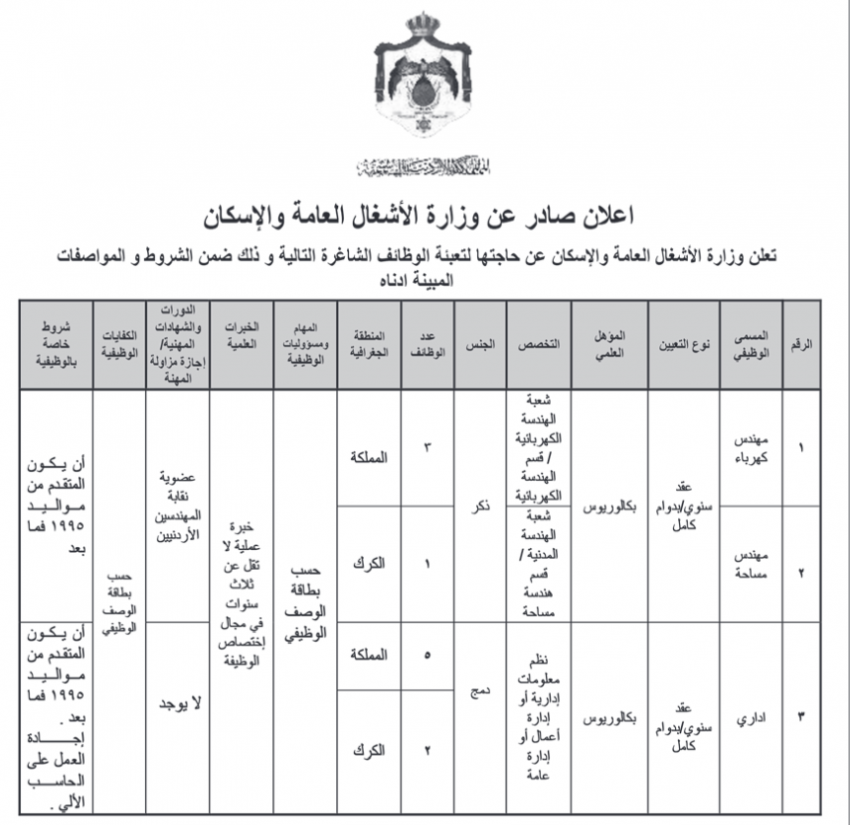 للعلّم - أعلنت وزارات ودوائر حكومية اليوم الثلاثاء حاجتها لتعيين موظفيين لوجود بعض الشواغر.