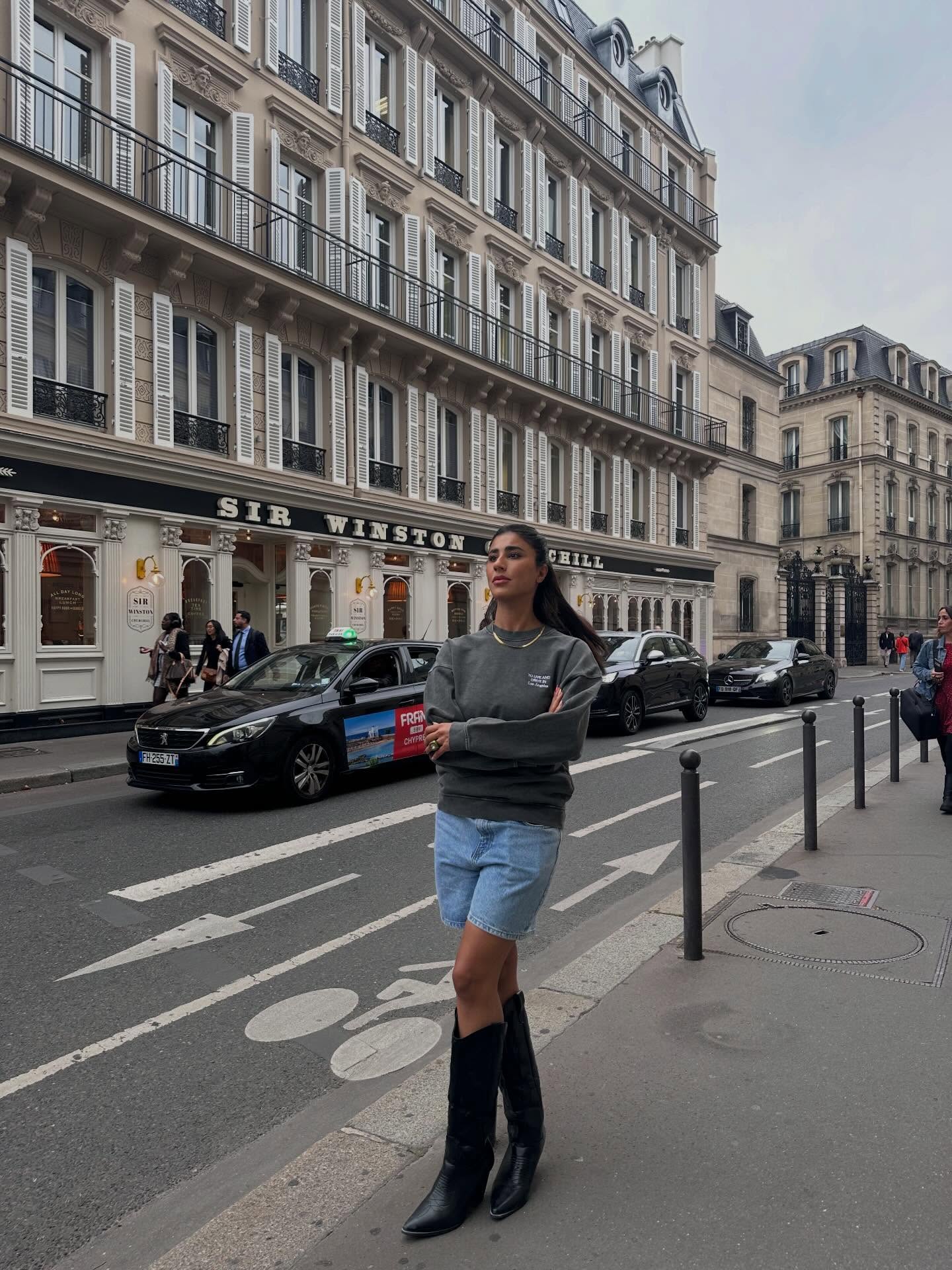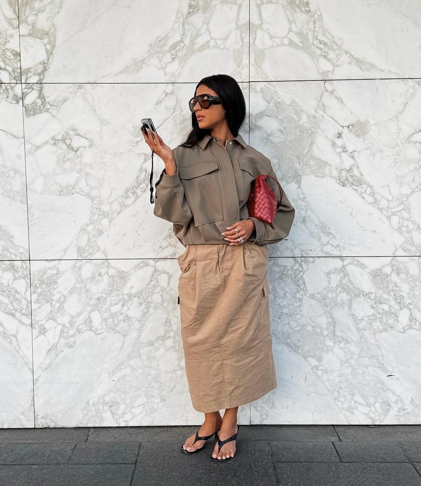 تعتمد ليلى في إطلالاتها اليومية على أسلوب كاجوال عصري يجمع بين العملية والذوق الرفيع. من الكنزة الرمادية الفضفاضة مع تنورة الجينز القصيرة وحذاء الجلد العالي، إلى القميص الرملي الواسع مع تنورة بيج انسيابية وحقيبة حمراء كسرت حيادية الألوان بذكاء.