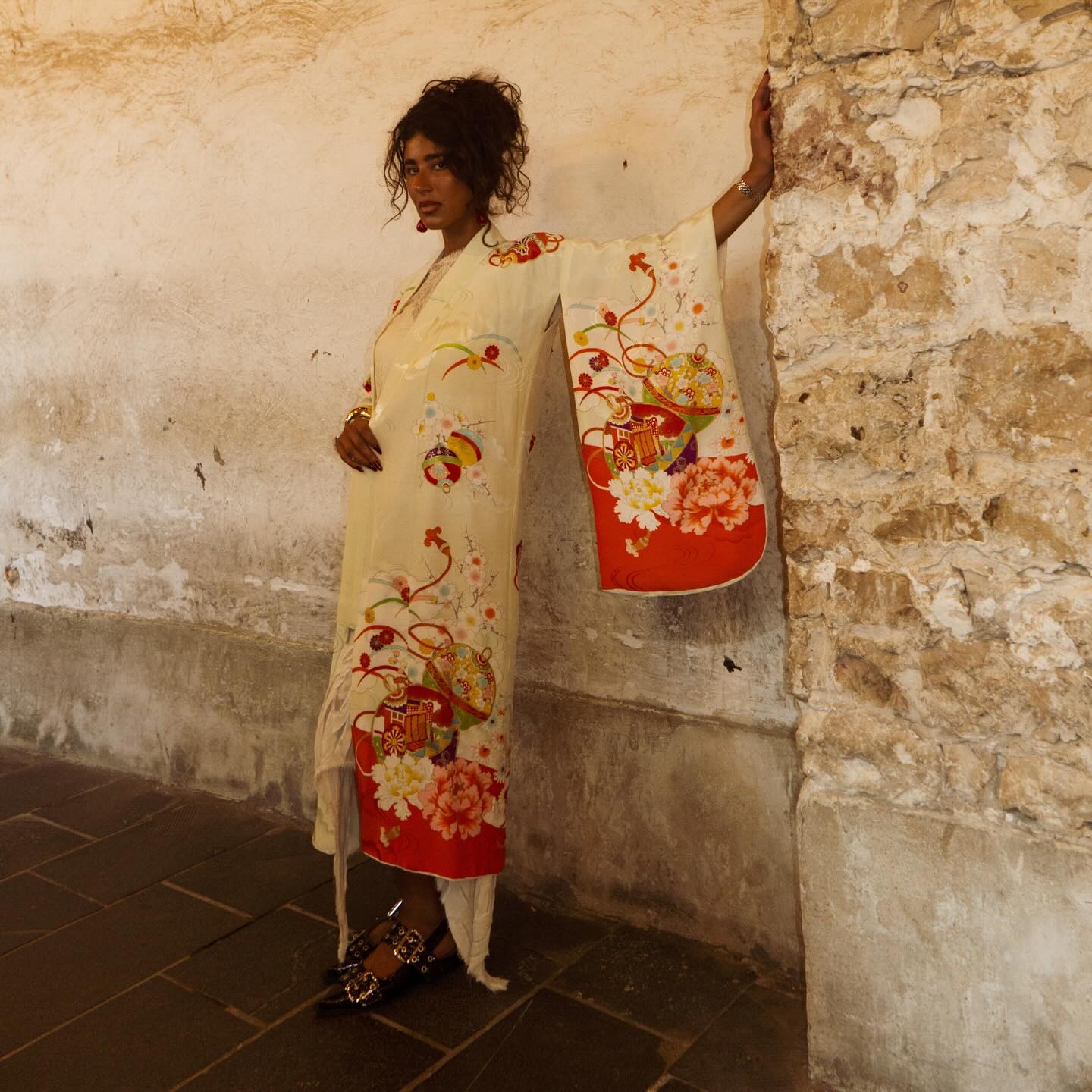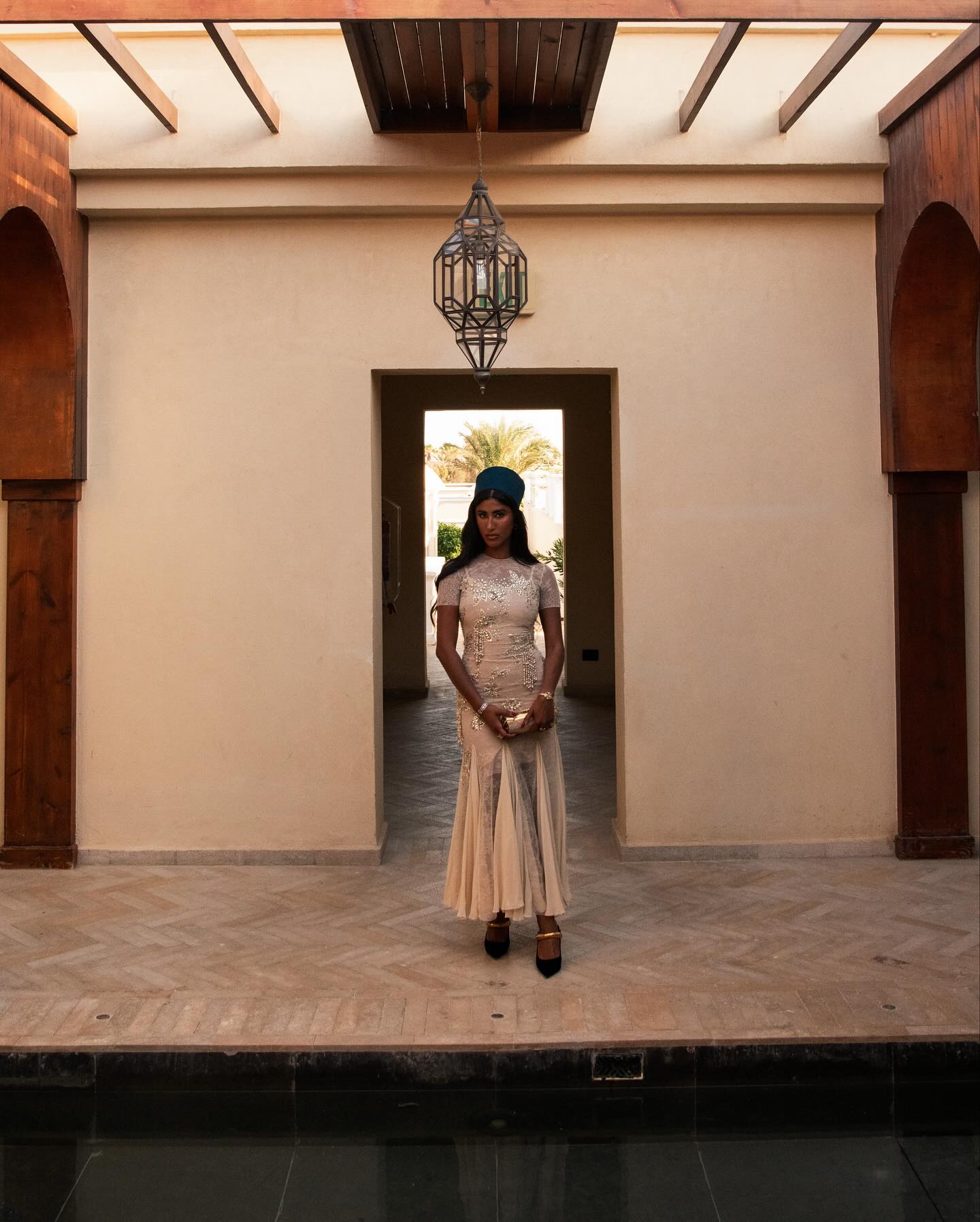 في المناسبات وجلسات التصوير، تميل ليلى لاختيارات أكثر فنية. عباءة حريرية عاجية مزخرفة برسومات زهرية كبيرة جسّدت مزيجًا أنيقًا بين التراث والحداثة، بينما عكست الفساتين العاجية والدانتيل والتوربان الملون ذائقتها الشرقية المعاصرة.