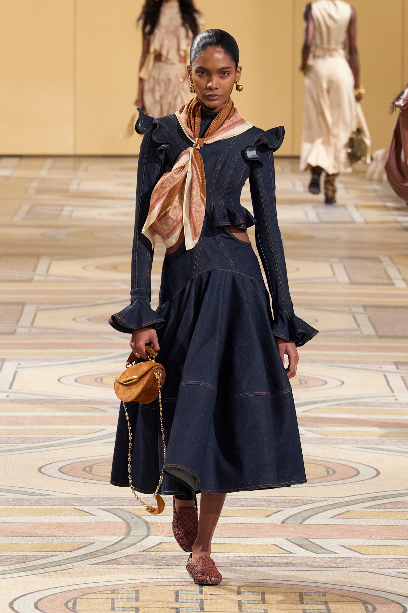 إطلالة Zimmermann أبرزت كيف يمكن لوشاح بنقشة لافتة عند العنق أن يكون محور اللوك بالكامل، شرط اختياره بما ينسجم مع ستايلك الخاص.