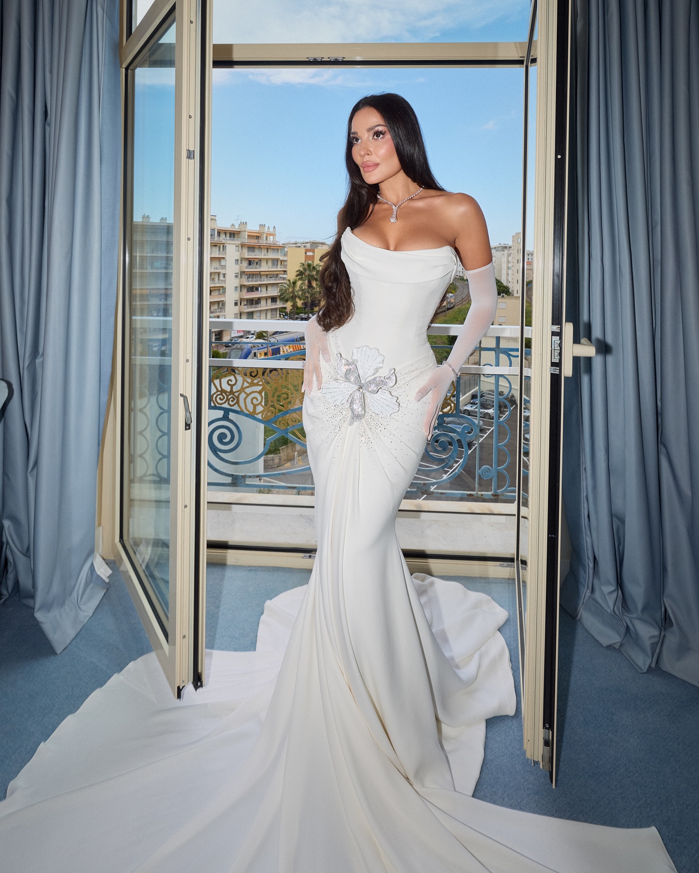 في الفساتين الفاتحة، تثبت نادين أن البساطة ليست نقيض الفخامة. فستان أبيض بقصّة سترابلس وعقدة مرصّعة بالكريستال جعلها تبدو كعروس عصرية على السجادة الحمراء، بينما جاءت إطلالات النيود والوردي بهدوء ونعومة تعكسان ثقة لا تحتاج إلى استعراض.