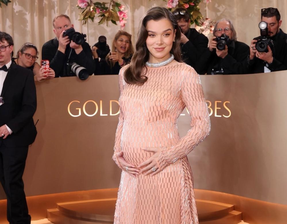هايلي ستاينفيلد اختارت في حفل الغولدن غلوب إطلالة من برادا تُلخّص مفهوم “الأناقة الهادئة”. فستان وردي باهت، قصة انسيابية، تفاصيل كريستالية ناعمة، وشفافية مدروسة تقول: نعم أنا حامل، ونعم أنا في قمة الأناقة، من دون أي استعراض زائد.