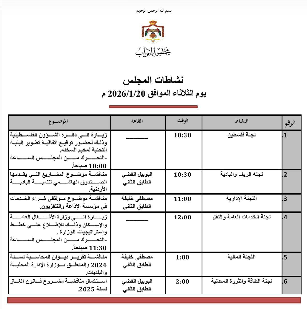 كما تناقش لجنة الريف والبادية موضوع المشاريع التي يقدمها الصندوق الهاشمي لتنمية البادية.