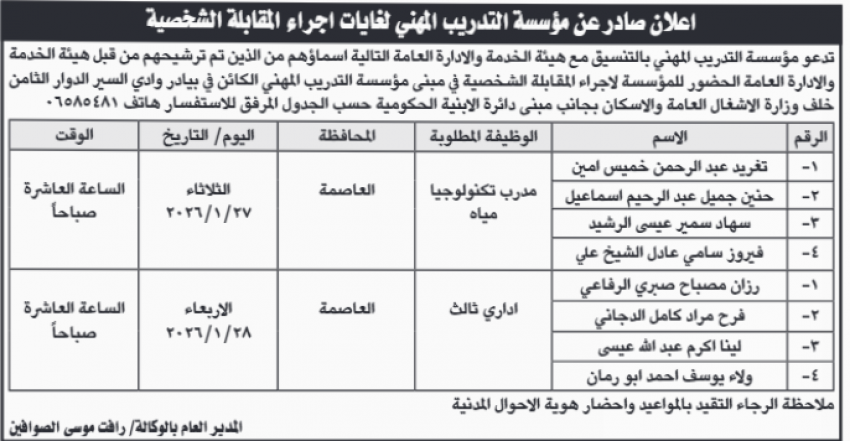 للعلّم - أعلنت عدد من الوزارات والمؤسسات الحكومية عن حاجتها لملء شواغر وظيفية في حين أعلنت مؤسسات أخرى عددًا من مجتازي الامتحانات التنافسية إلى إجاء المقابلات الشخصية.
