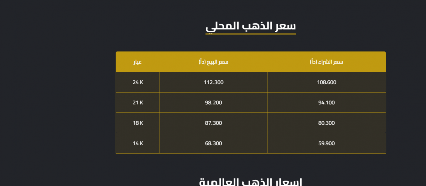 وبلغ سعر الغرام الواحد من الذهب عيارات 24 و18 و14 لغايات البيع من محالّ الصاغة 112.3 و 87.3 و 68.3 دينارا على الترتيب.