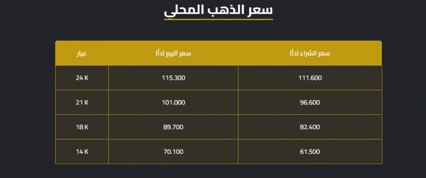 وبلغ سعر الغرام الواحد من الذهب عيارات 24 و18 و14 لغايات البيع من محالّ الصاغة 115.30 و89.70 و70.10 دينارا على الترتيب.