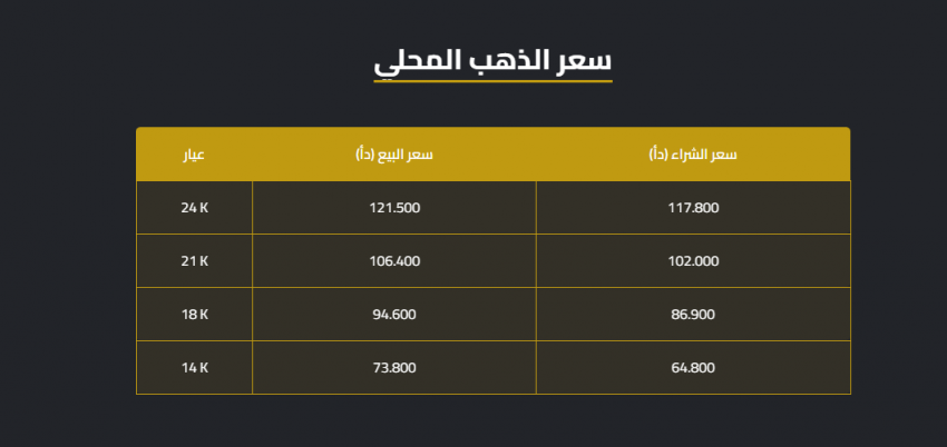 وكما بلغ سعر الغرام الواحد من الذهب عيارات 24 و18 و14 لغايات البيع من محالّ الصاغة 121.50 دينار و 94.6 و 73.8 دينارا على التوالي.