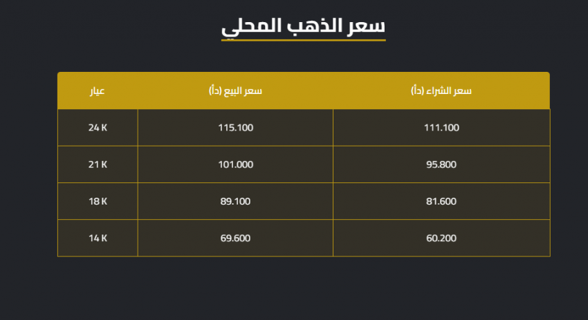 وبحسب النشرة التي أصدرتها النقابة العامة لأصحاب محلات تجارة وصياغة الحلي والمجوهرات، فقد بلغ سعر الغرام الواحد من الذهب عيارات 24 و18 و14 لغايات البيع من محلات الصاغة عند 115.10 و 89.10 و69.60 دينارا على التوالي.