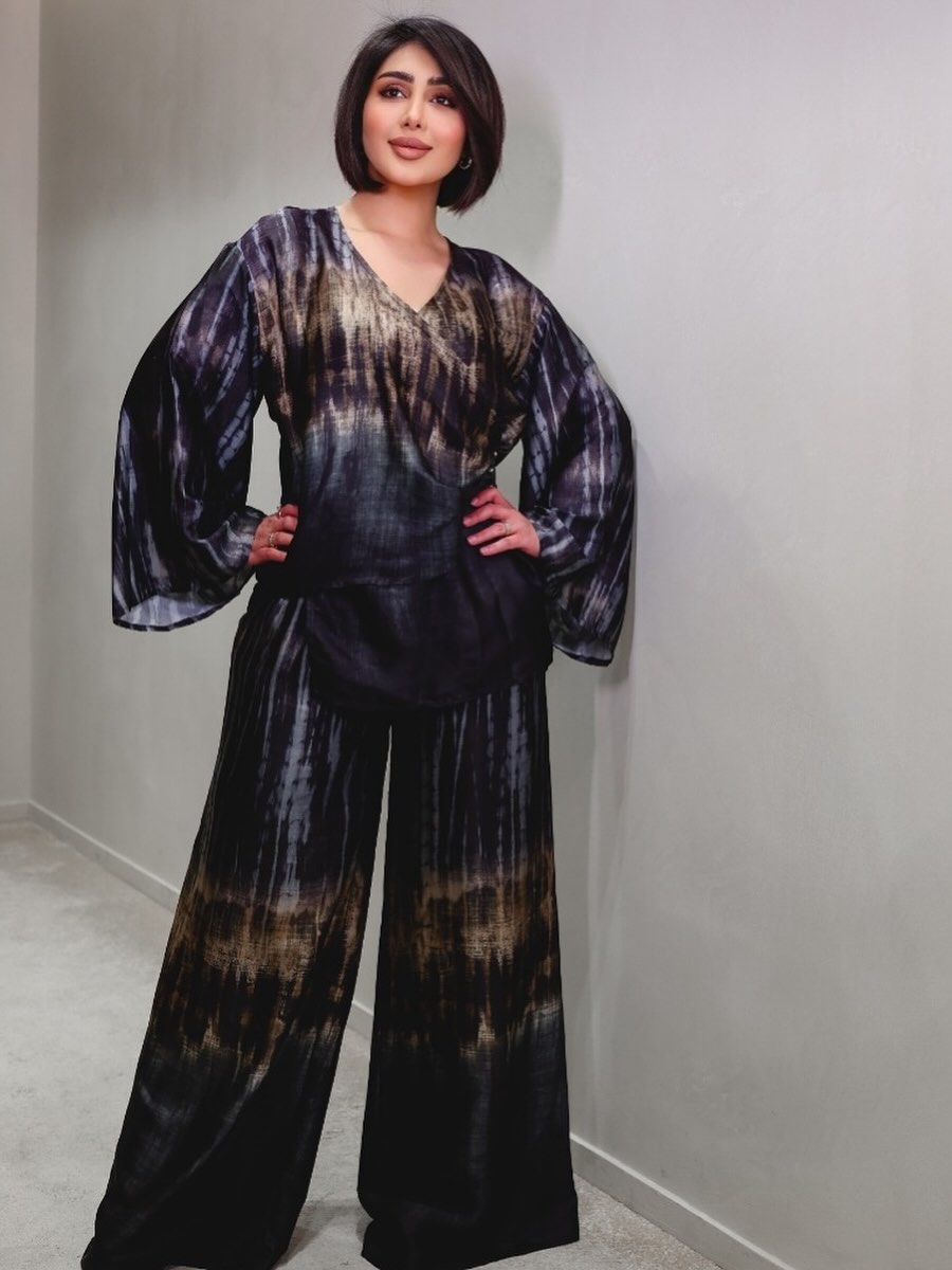 كما لم تغب الإطلالات العصرية المريحة عن خياراتها، سواء عبر أطقم حريرية واسعة بطبعات فنية جريئة، أو تصاميم مخملية فضفاضة مزينة بتفاصيل ناعمة، أكدت من خلالها أن الراحة لا تتعارض مع الأناقة، بل تكملها عندما تُنسق بذكاء.