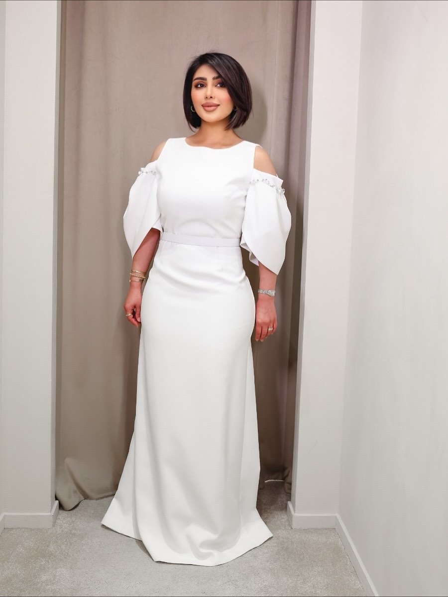 كما اعتمدت فستانًا أبيض طويل بقصة مستقيمة وأكمام واسعة منسدلة، مع حزام رفيع يحدد الخصر، في إطلالة تؤكد أن البساطة المدروسة قادرة على إبراز الرشاقة بأناقة لافتة.