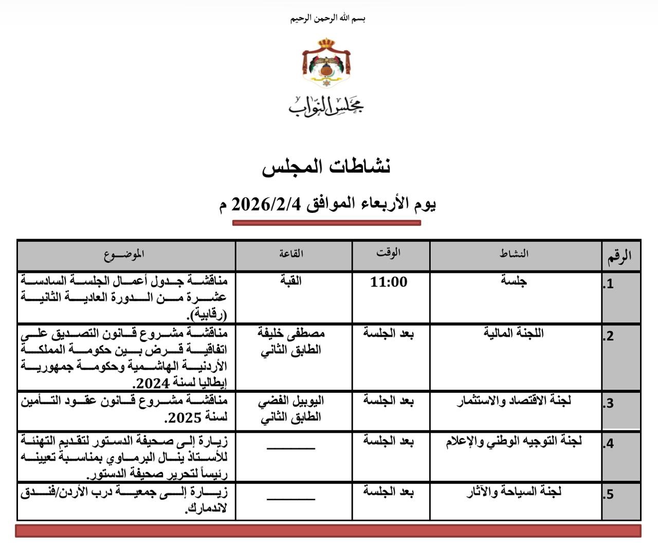 وبعد الجلسة تجتمع اللجنة المالية لمناقشة مشروع قانون التصديق على اتفاقية قرض بين الحكومة وحكومة إيطاليا لسنة 2024.