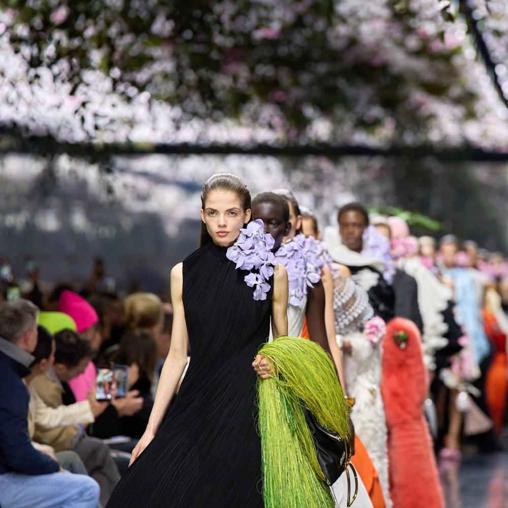 عادت الطبيعة بوجهها الكلاسيكي من خلال صيحة الزهور، لكن هذه المرة بأبعاد تفوق المألوف. في فالنتينو، تألقت الزهور مطرزة بالذهب والفضة، وزُيّنت فساتين الكيمونو الشفافة بأزهار الكرز.
