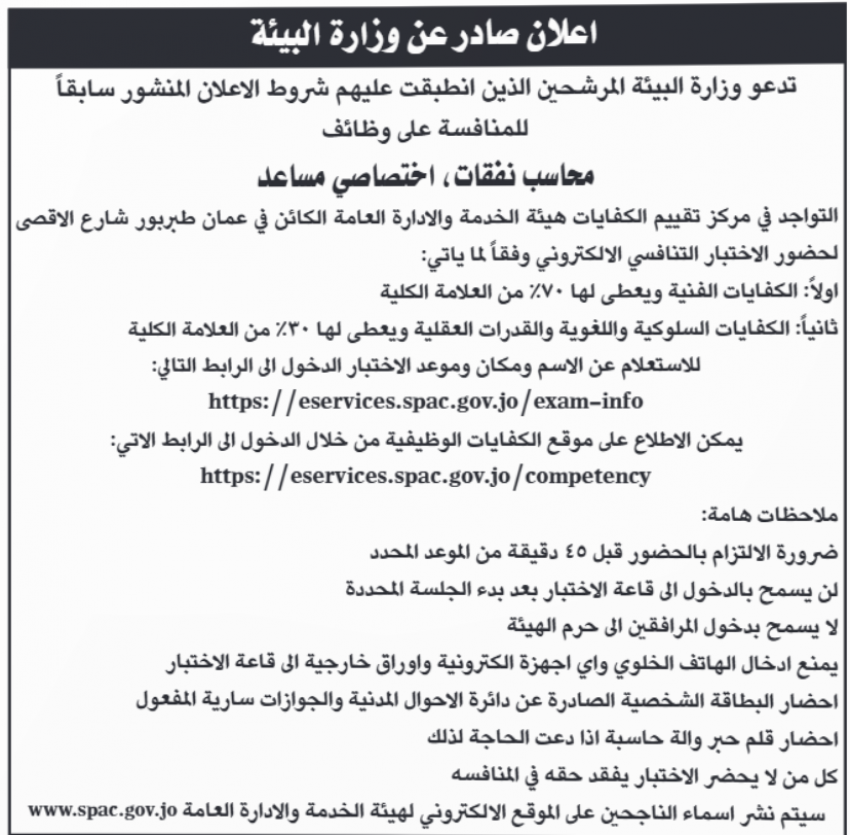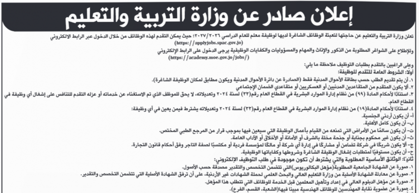 كما اعلنت وزارة التربية والتعليم ومؤسسات أخرى عن رغبته في ملء شواغر وظيفية.